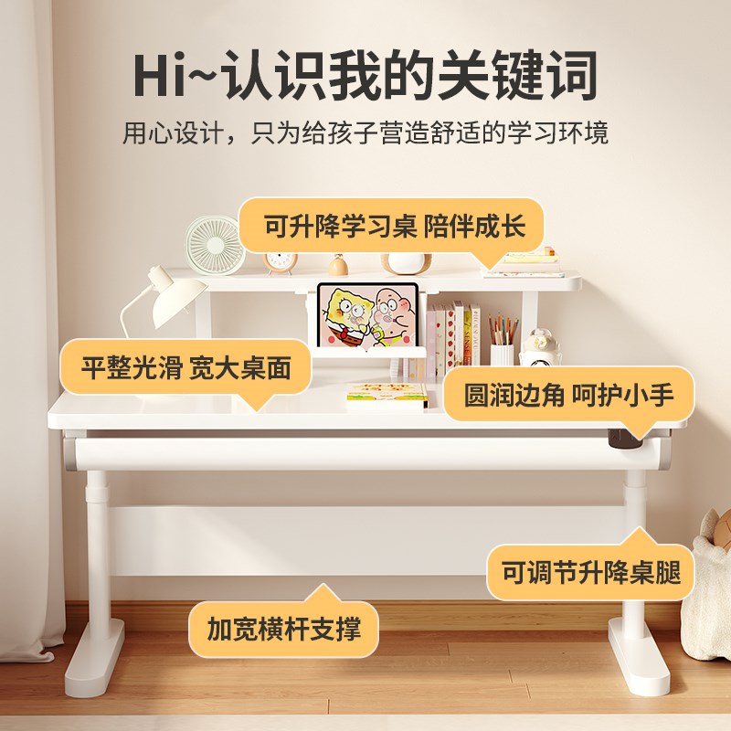 儿童学习桌椅家用书桌学生写字桌青少年可升降实木桌椅套装大白桌