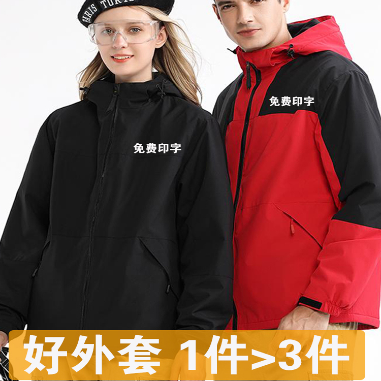 户外冲锋衣定制工作服春秋冬加绒外套印logo绣字三合一工装两件套