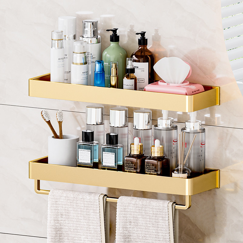 太空铝浴室置物架土豪金色卫生间收纳架壁挂式挂件用品北欧免打孔