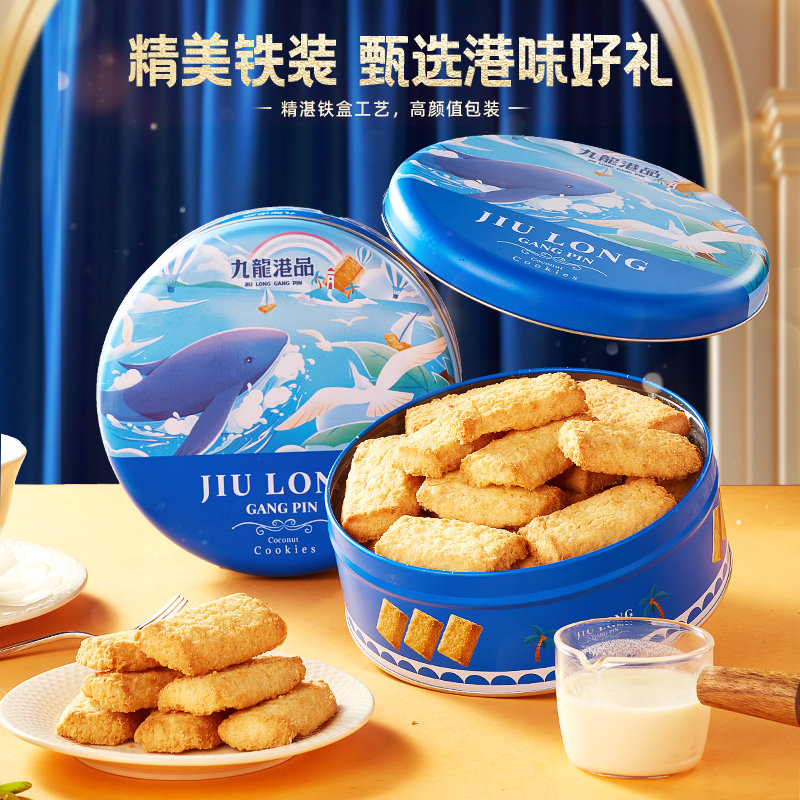 九龙港品牛乳椰椰曲奇240g生打椰蓉酥椰子酥黄油饼干送礼零食铁罐