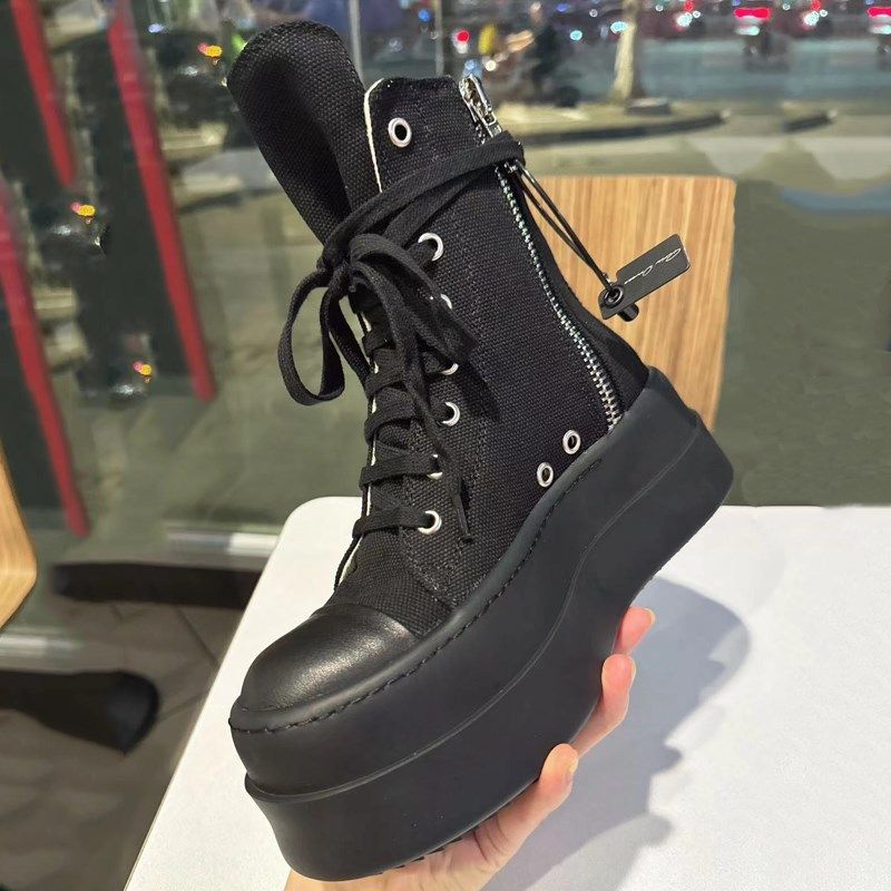 高帮帆布鞋男情侣款增高休闲板鞋时尚百搭潮流短靴女松糕厚底7cm