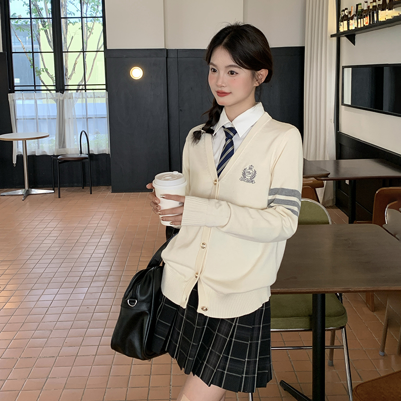 东京岁时记jk日系学院风奶白色修身针织开衫显瘦毛衣外套萩原奈子