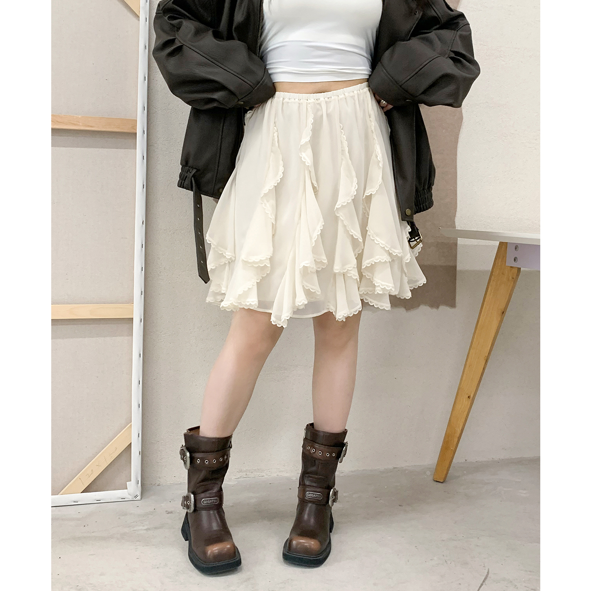 CV大码女装 秋季新款高腰不规则蕾丝花边半身裙垂感短裙胖MM穿搭
