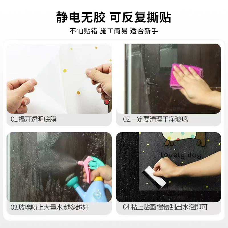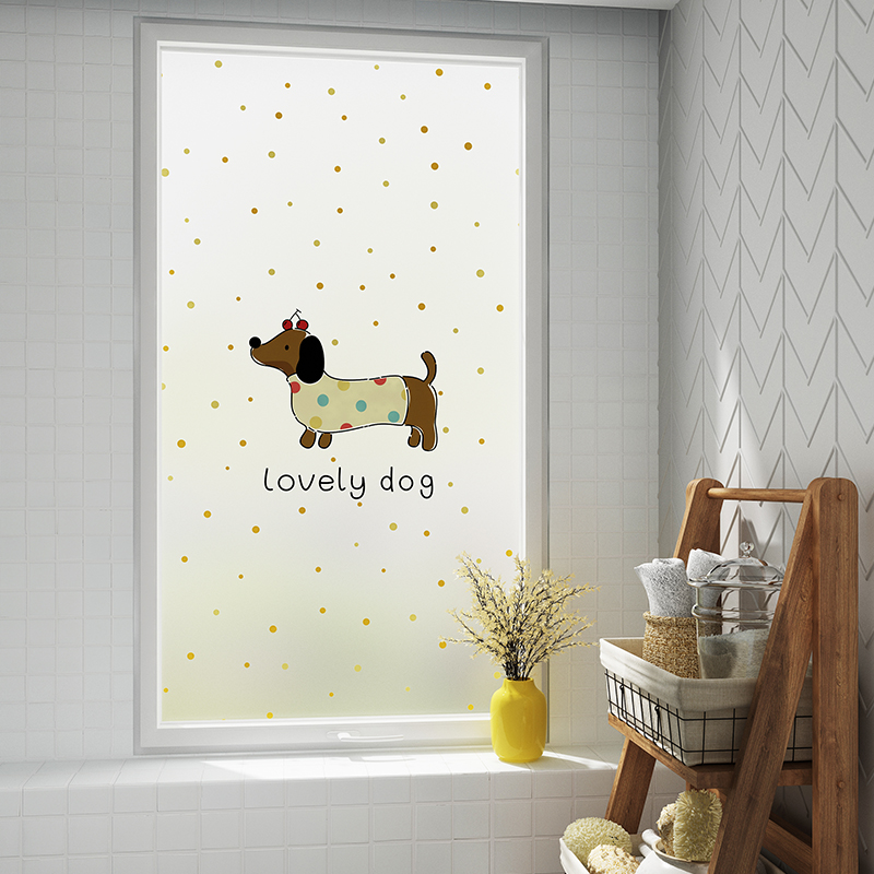 卡通小狗波点装饰浴室窗户透光防窥玻璃贴纸布置卫生间静电贴膜