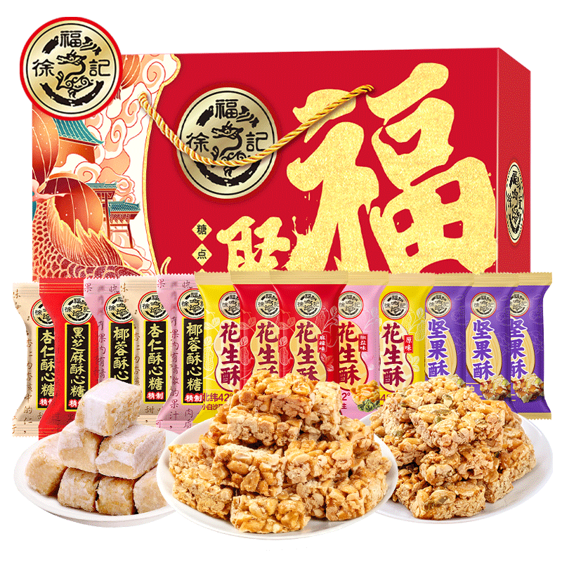 徐福记新年糖果巧克力零食大礼包礼盒1500g 酥心糖花生酥坚果酥
