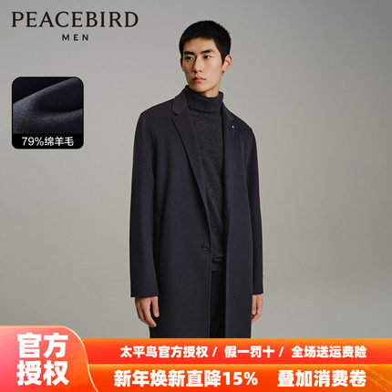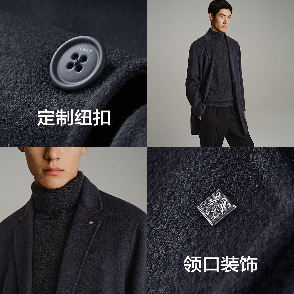 【商场同款】太平鸟男装 单排扣西装领深灰毛呢大衣男B1AAD4212