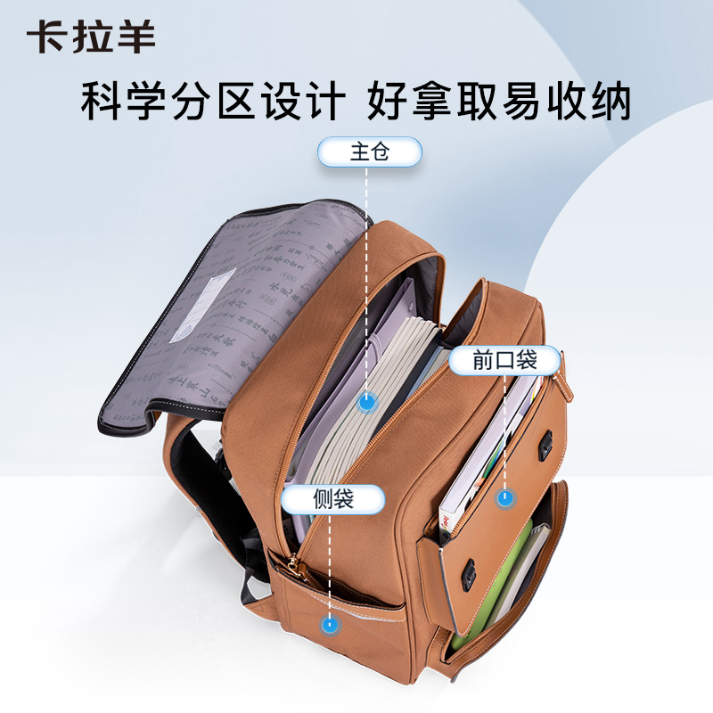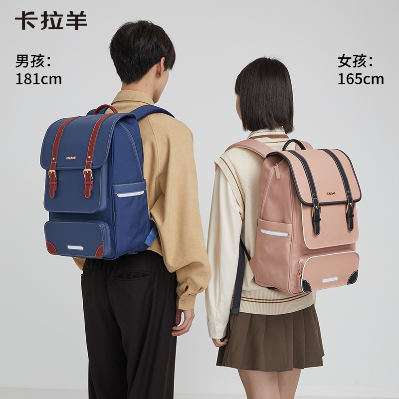 卡拉羊中学生书包护脊减负双肩包女五到六年级初中生九微米系5183