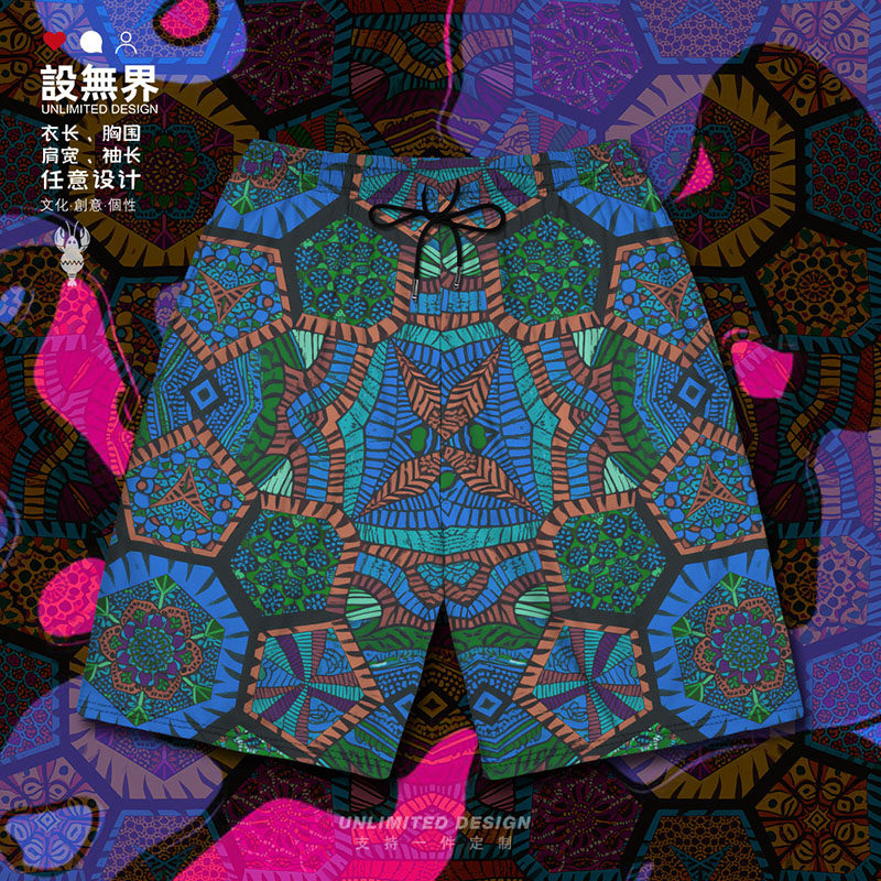非洲纹理图案拼接特色迷幻图纹趣味大码短裤男装女装0018设 无界