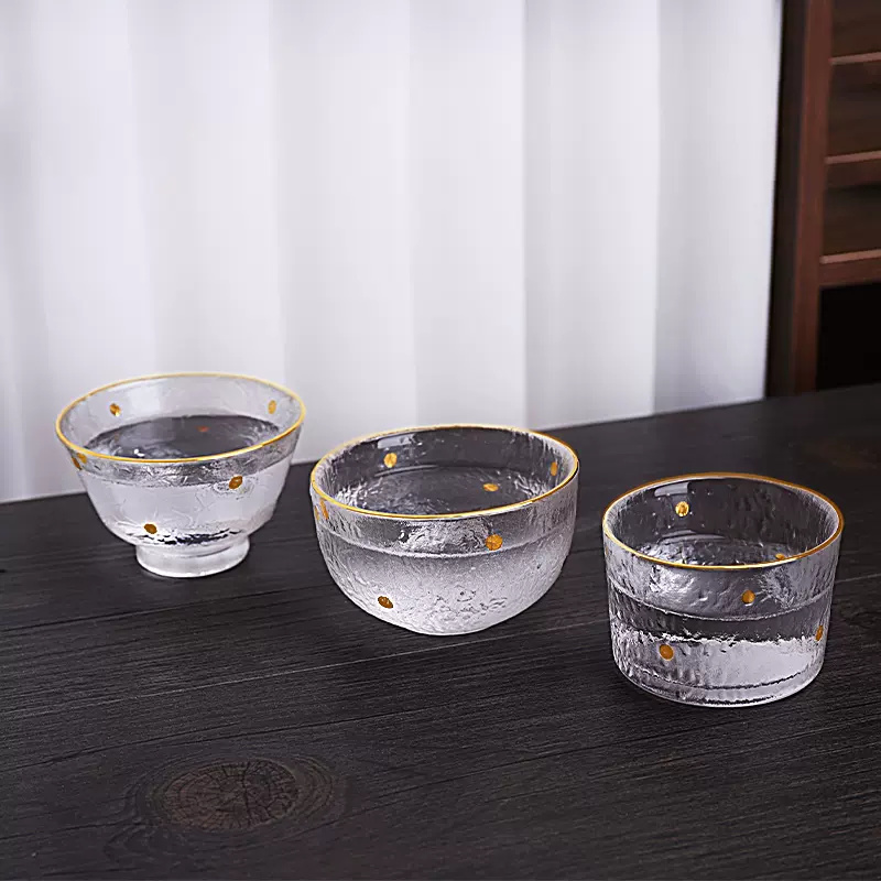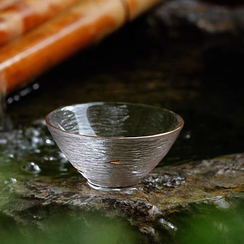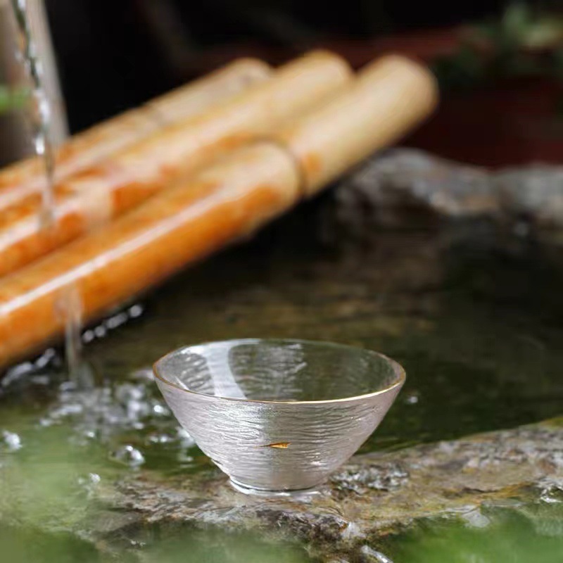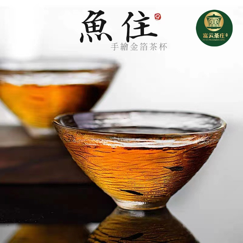 金箔鱼住玻璃杯斗笠杯主人杯品茗杯点金边白菜鱼戏描金鱼锤纹冰露
