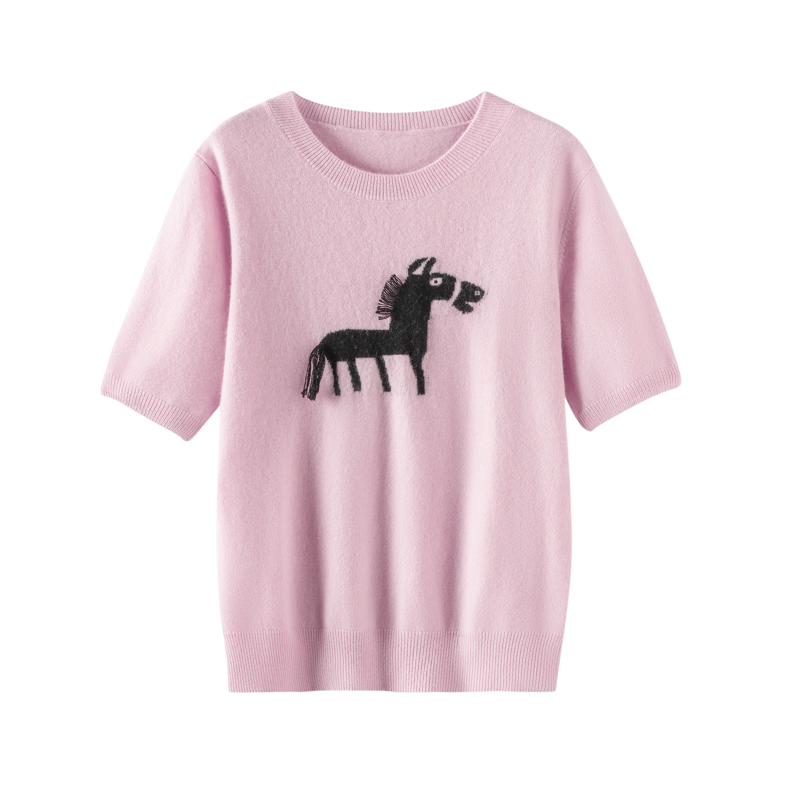小马流苏!2025早春新款山羊绒衫女短袖五分袖毛衣圆领打底针织衫