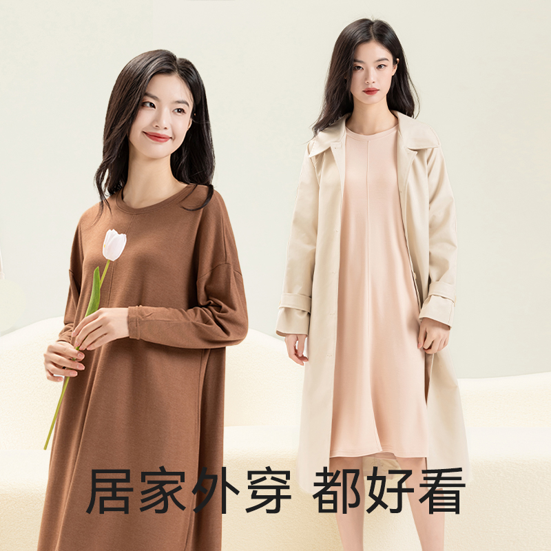带胸垫睡衣女秋冬款2025新款睡裙德绒自发热连衣裙孕妇长袖家居服