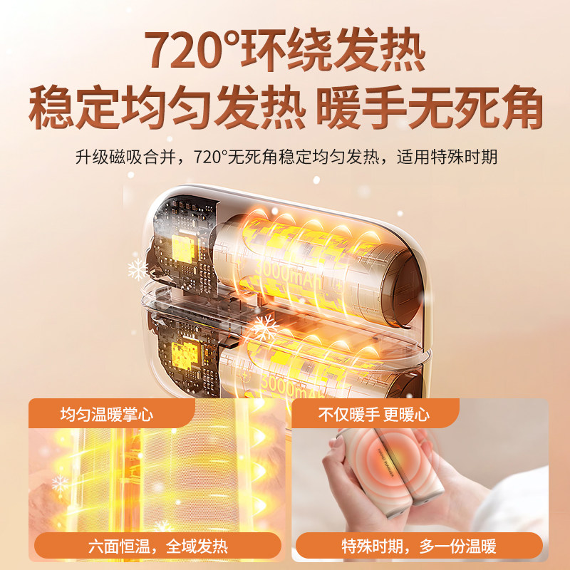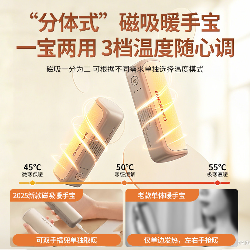 【3C认证】kgke暖手宝2025新款充电二合一磁吸手握式usb迷你随身携带防爆女生礼物伴手礼学生电竞取暖神器冬