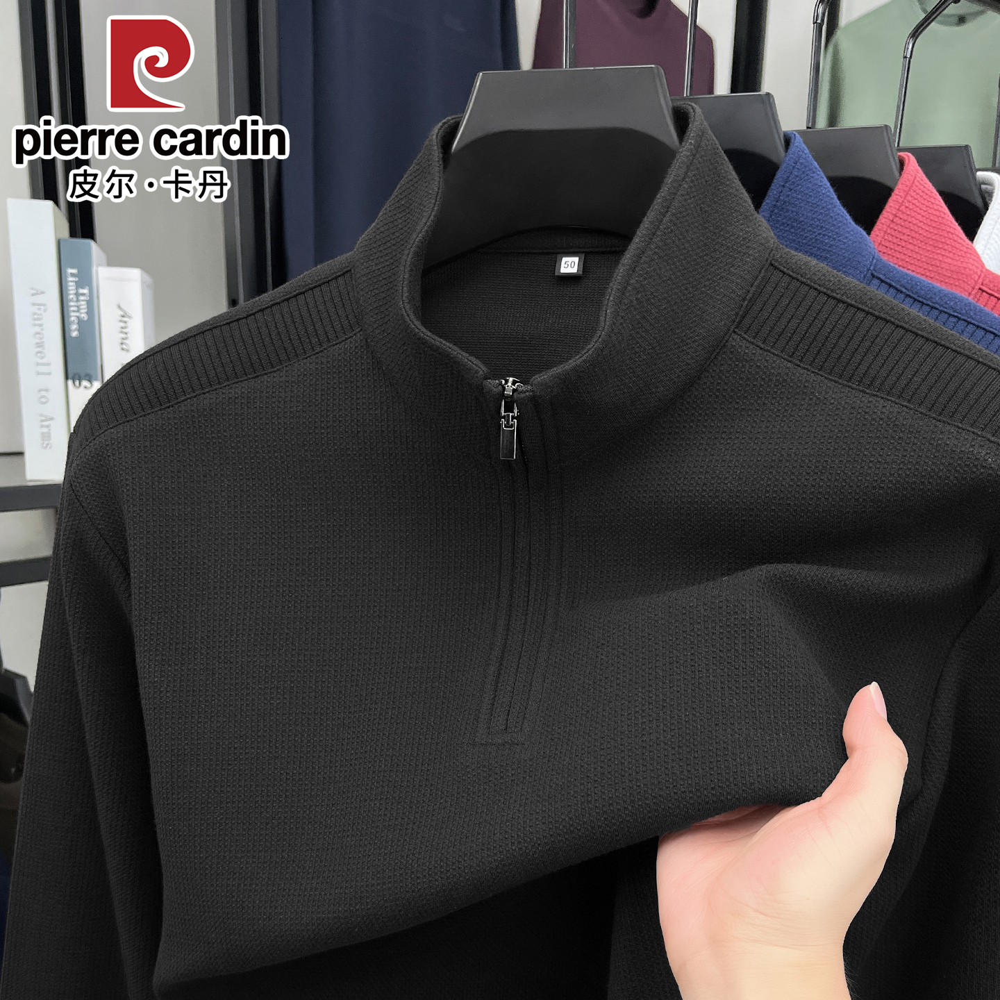 皮尔卡丹春秋季新款立领男士长袖T恤宽松POLO衫商务休闲棉质上衣