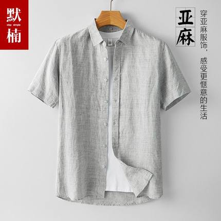 男士休闲短袖棉麻亚麻衬衫衬衣