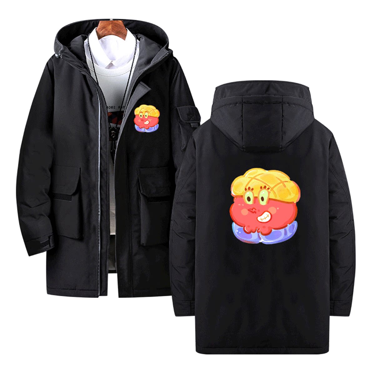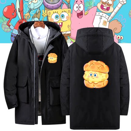 卡通海绵宝宝菠萝包男女秋冬休闲新款卡通情侣可定制中长款羽绒服