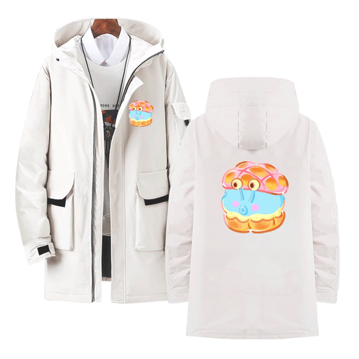 卡通情侣可定制中长款羽绒服