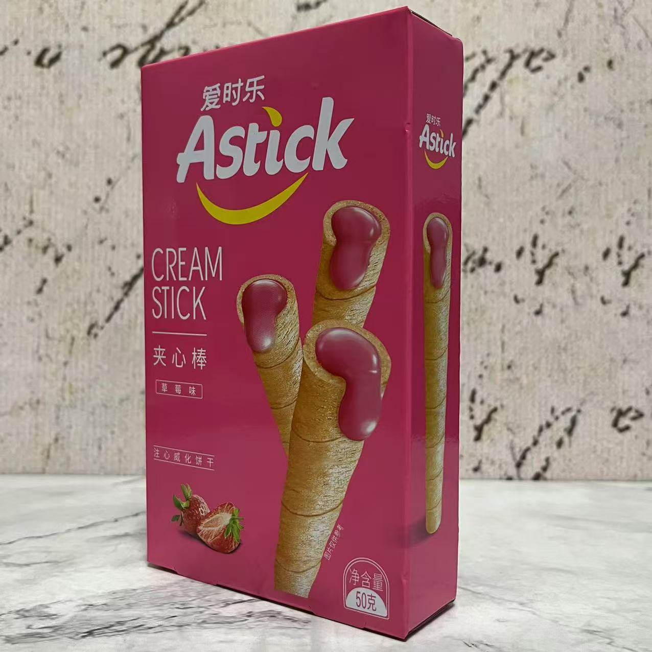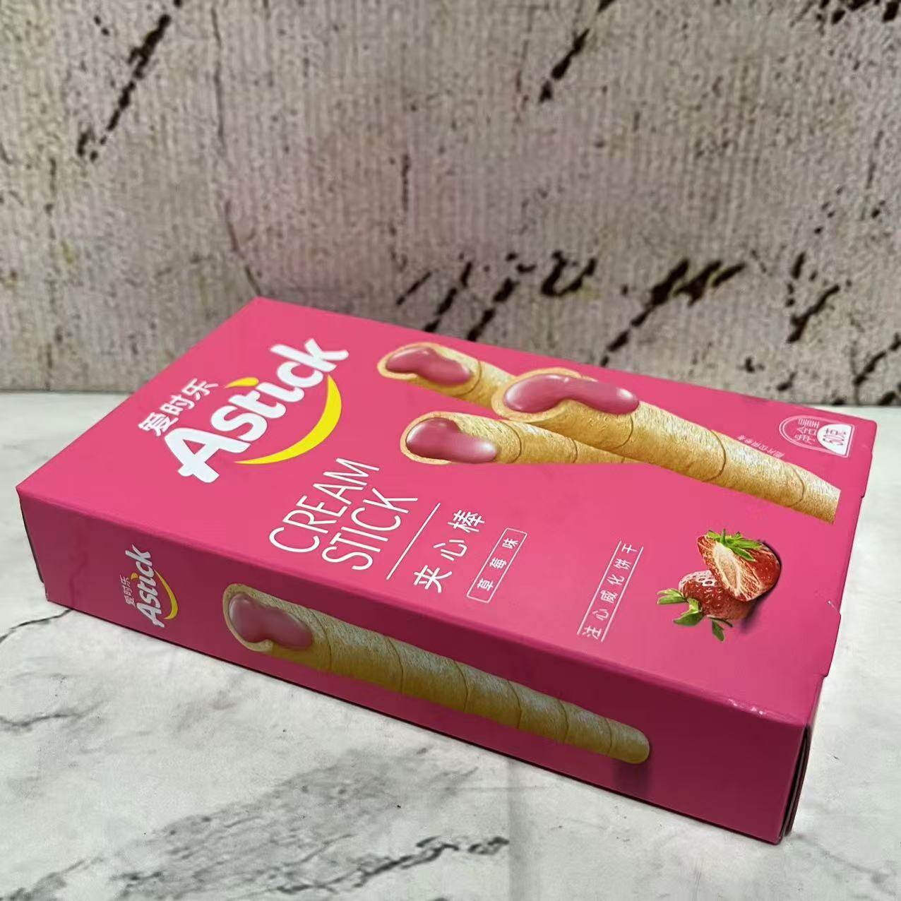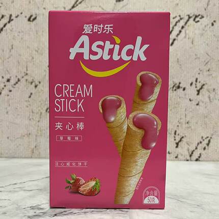 特价售卖 Astick爱时乐草莓味夹心棒注心威化饼干50g盒装休闲零食