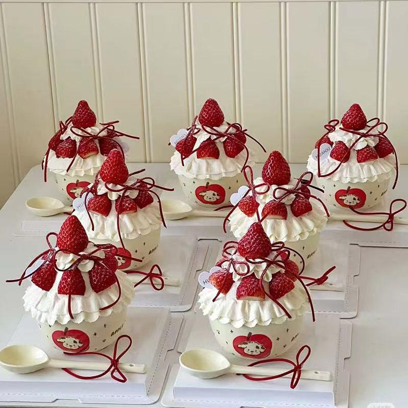 2026网红圣诞节新年草莓碗kt猫蛋糕装饰摆件小熊陶瓷碗蛋糕碗插件