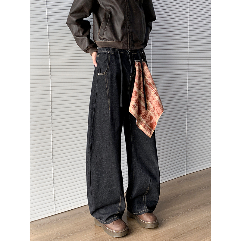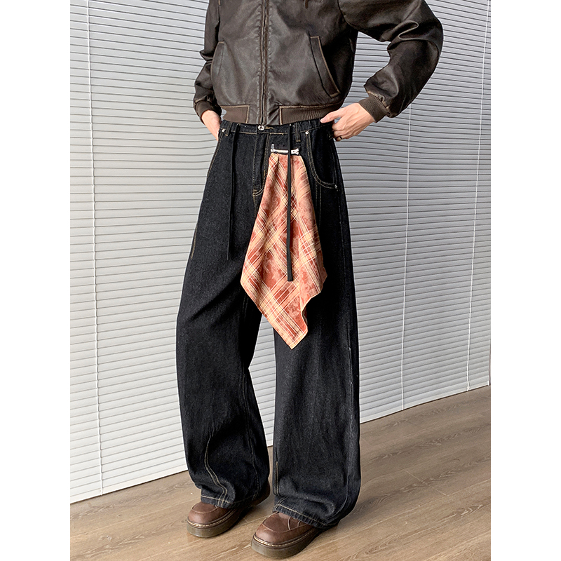 微喇方巾弯刀牛仔裤男女美式高级感宽松休闲廓形百搭水洗阔腿长裤