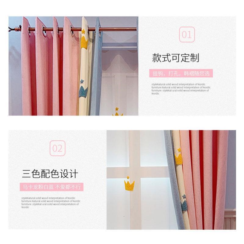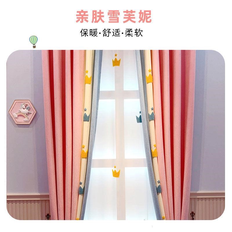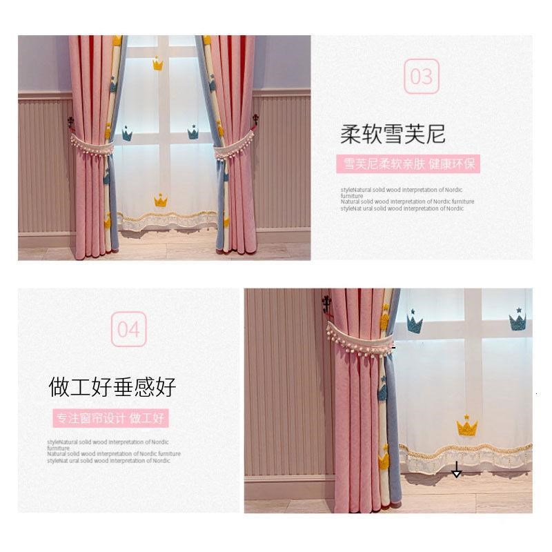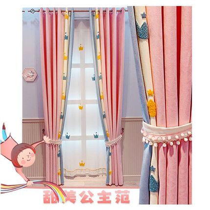 2024儿童房遮光窗帘公主风拼接女孩男孩卧室飘窗窗帘成品窗纱定制