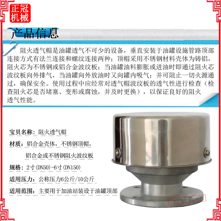 阻火透气帽铝合金防火阀放气阀加油站油罐阻火器呼吸阀DN50/2寸