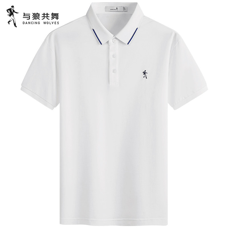 与狼共舞撞色翻领短袖T恤男2025夏季新款商务休闲刺绣本白POLO衫