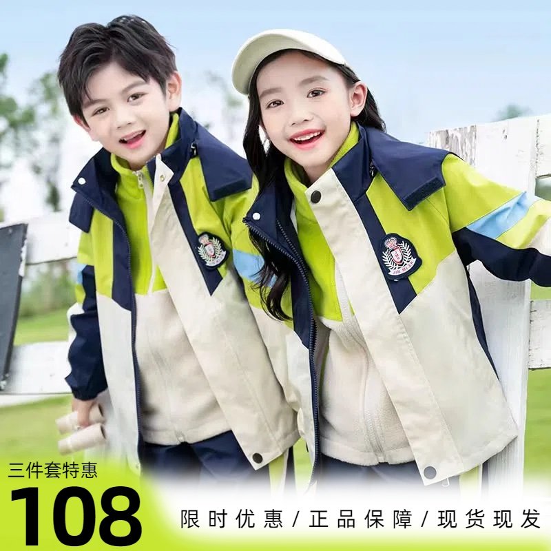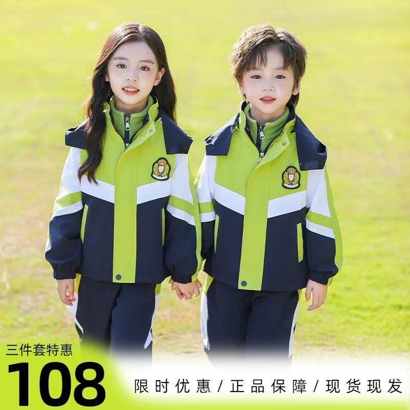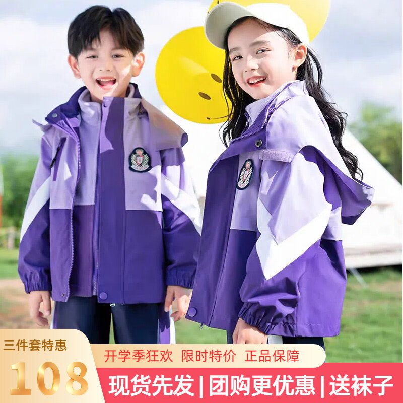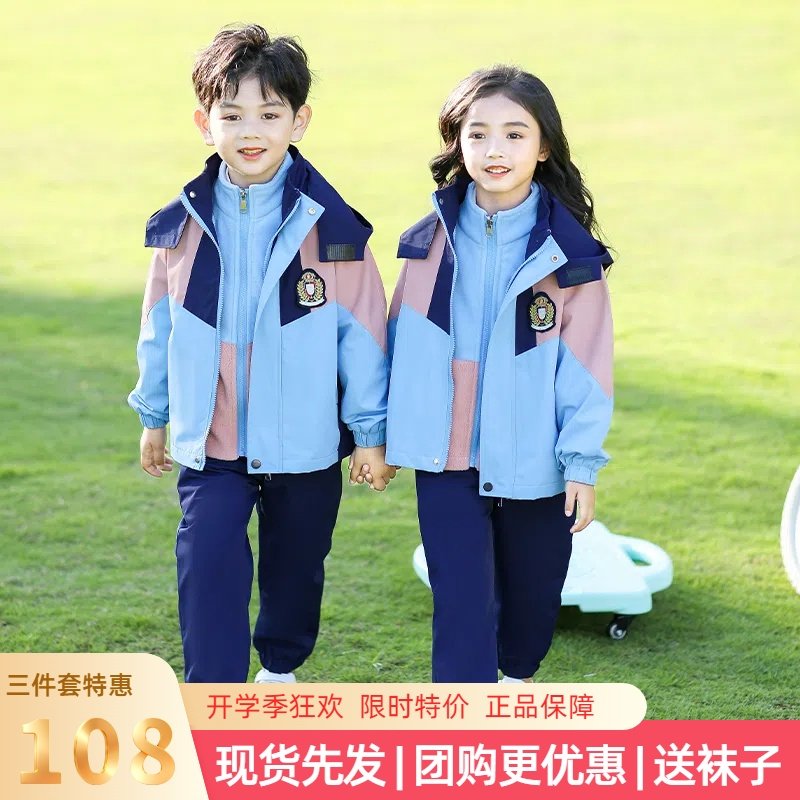 小学生校服冲锋衣三件套一年级班服冬季套装幼儿园园服可拆卸春秋