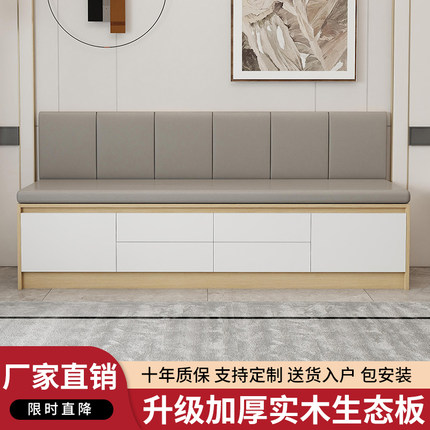 卡座实木沙发软包坐垫一体小户型家用大容量抽屉储物可定制飘窗柜