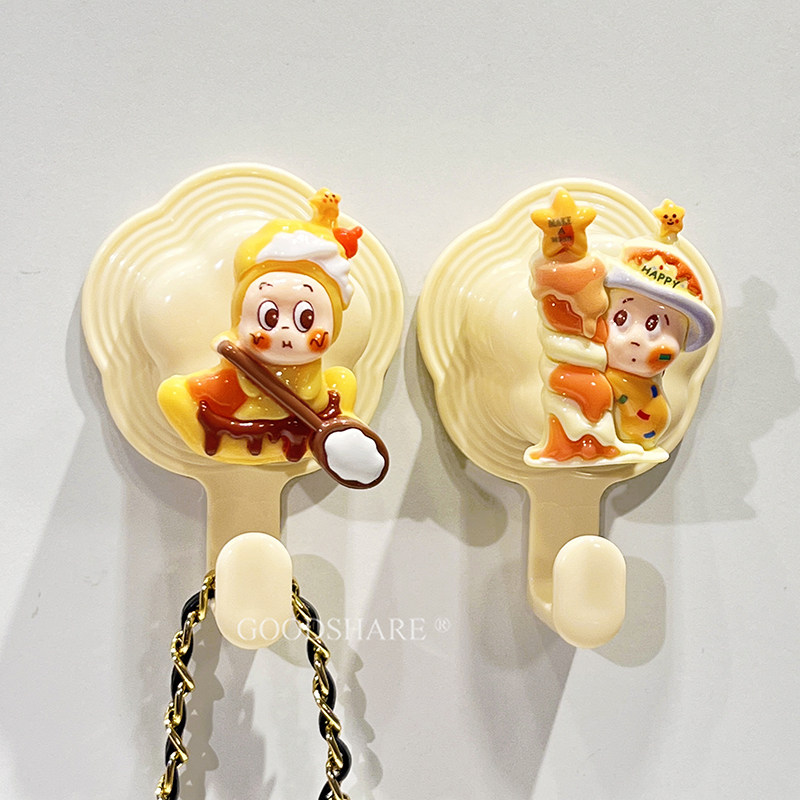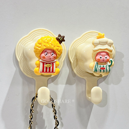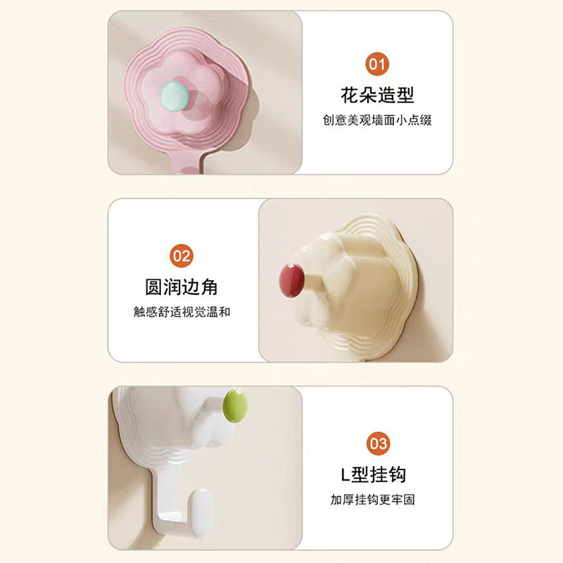 免打孔挂钩墙洞遮丑装饰可爱卡通高颜值家用卫生间无痕花朵双挂钩