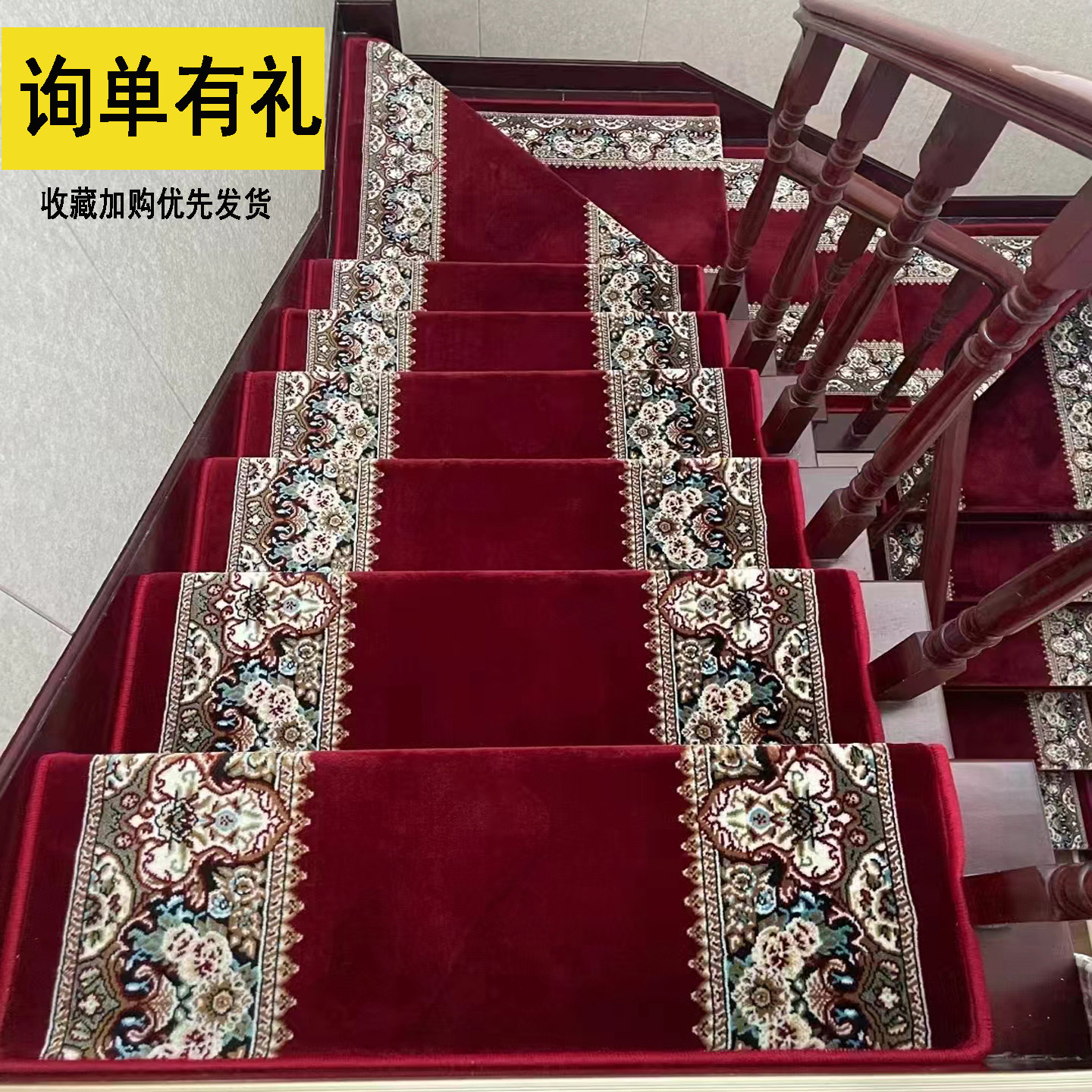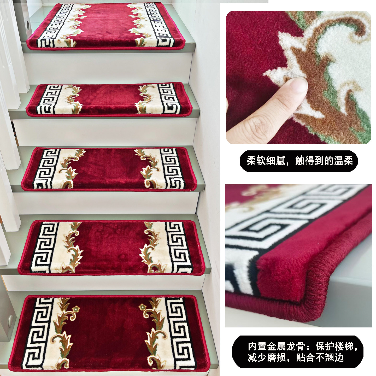 嘉驰别墅家用木楼梯地毯自粘防滑楼梯垫室内踏步垫阶梯式定制满铺