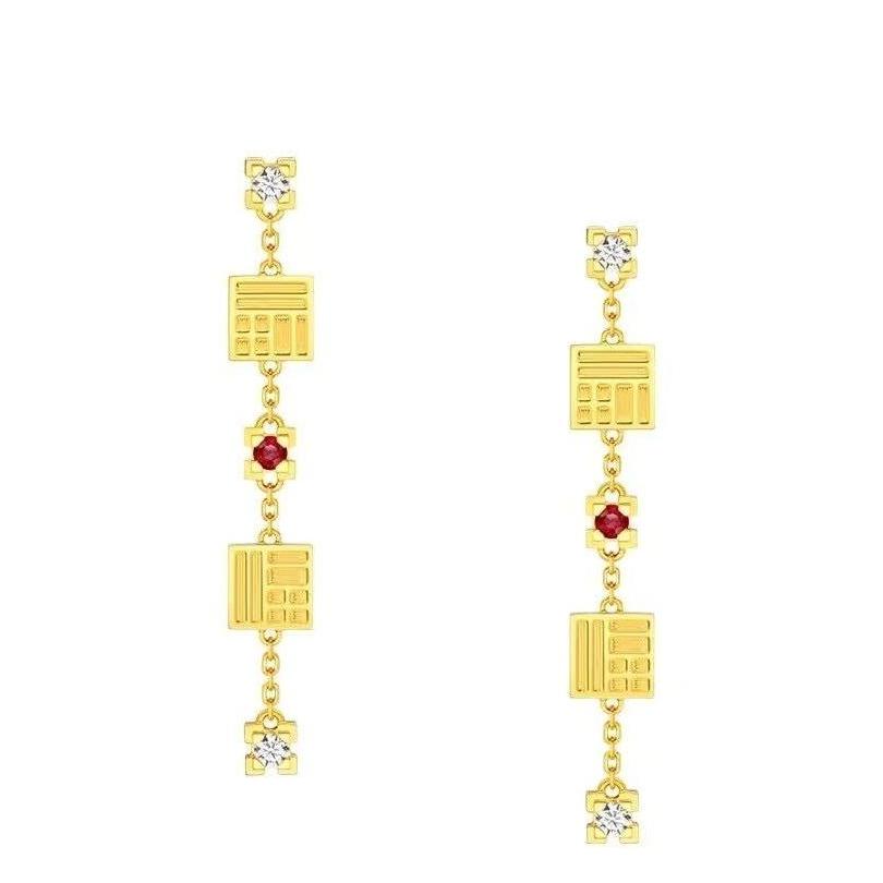 周大福双福字福牌足金钻石耳环