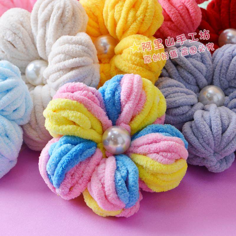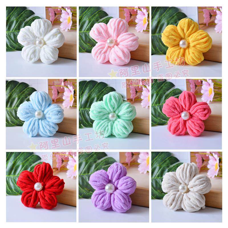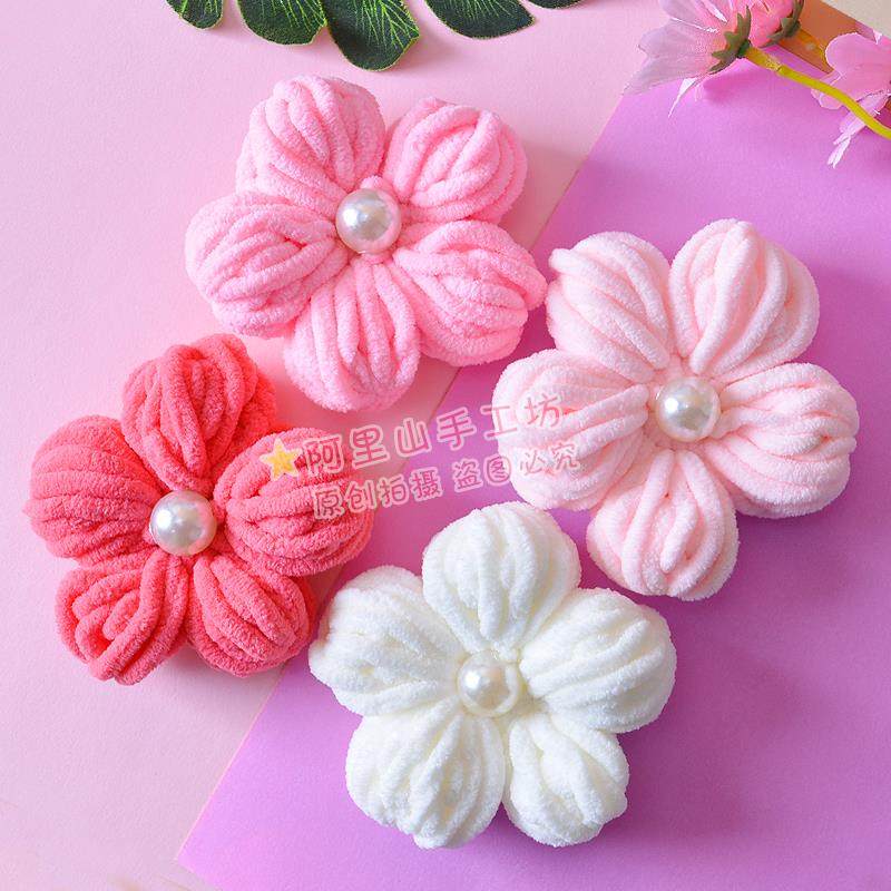 成品大号泡芙花手工编织冰条线diy拖鞋花包包花服装配饰大花包邮