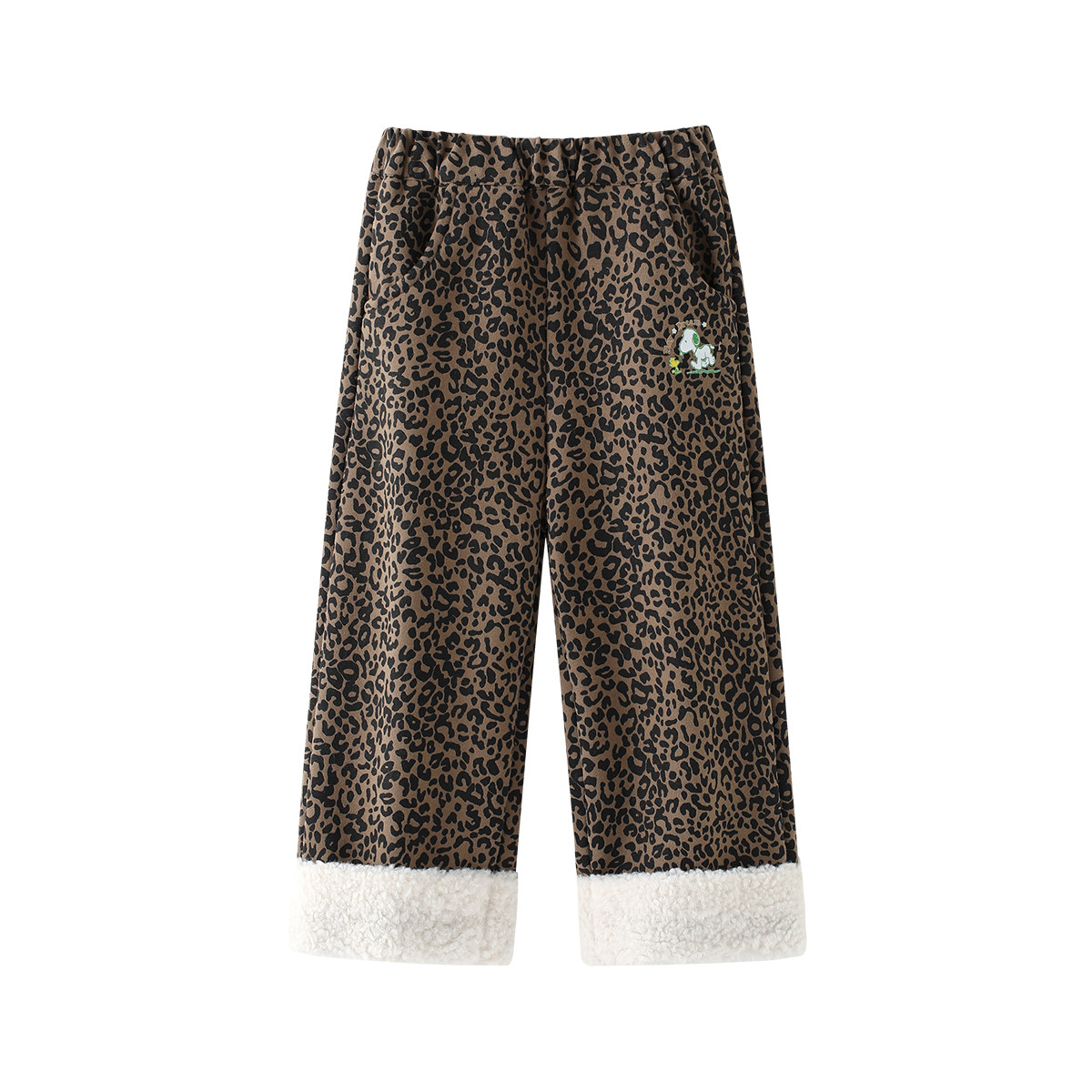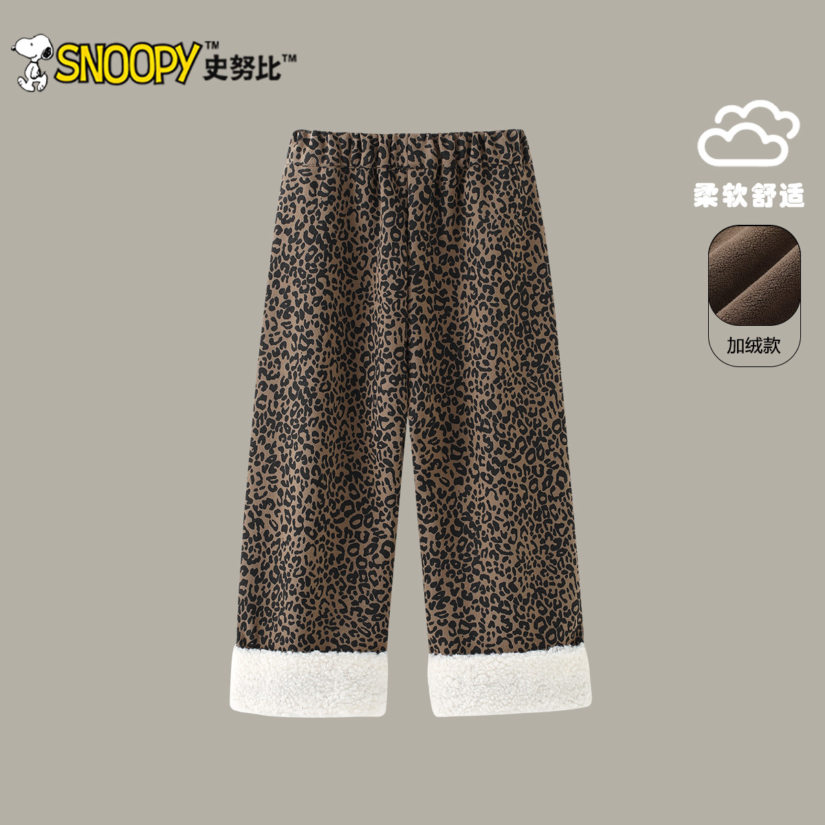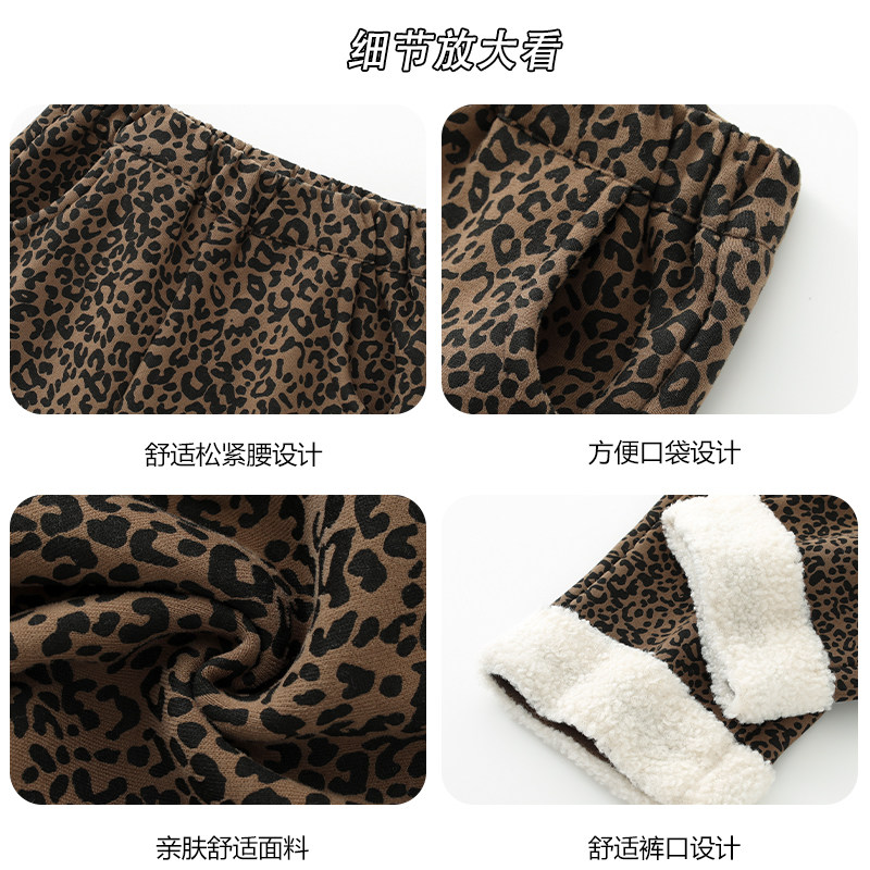 史努比女童裤子2025冬季新款儿童加绒长裤女孩冬装时髦豹纹直筒裤