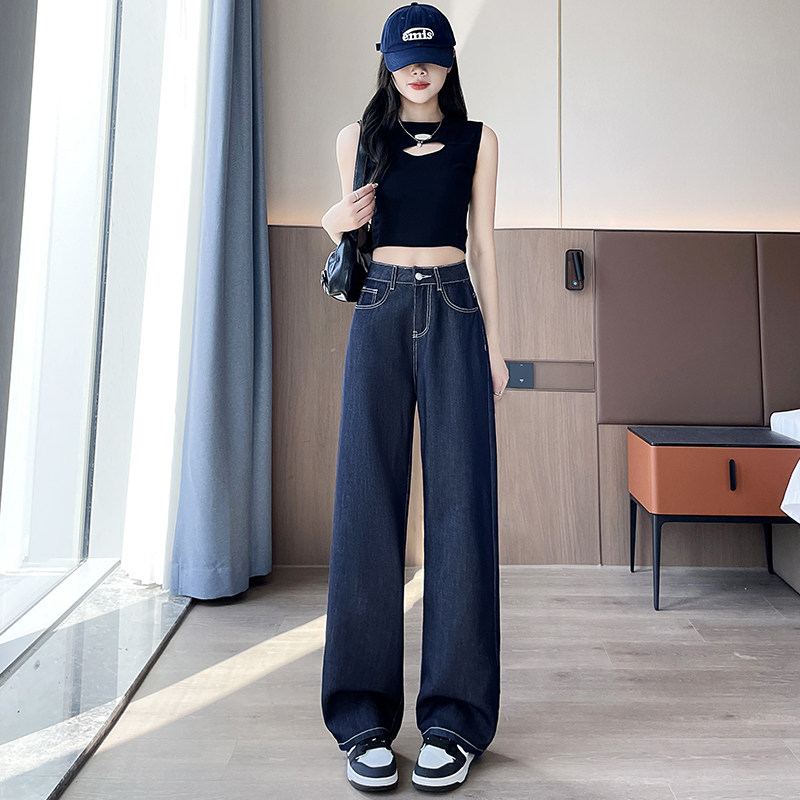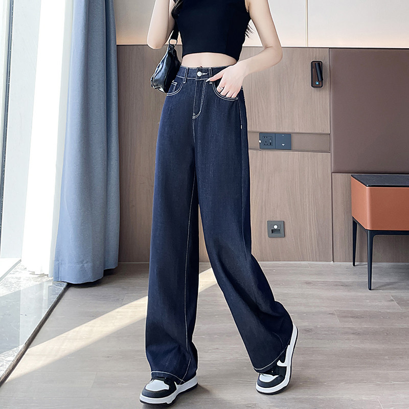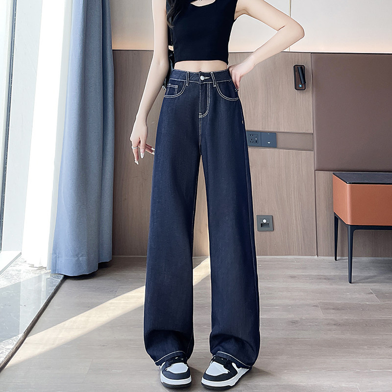 实2026春季丹宁蓝小个子牛仔裤女显高阔腿裤垂感直筒裤