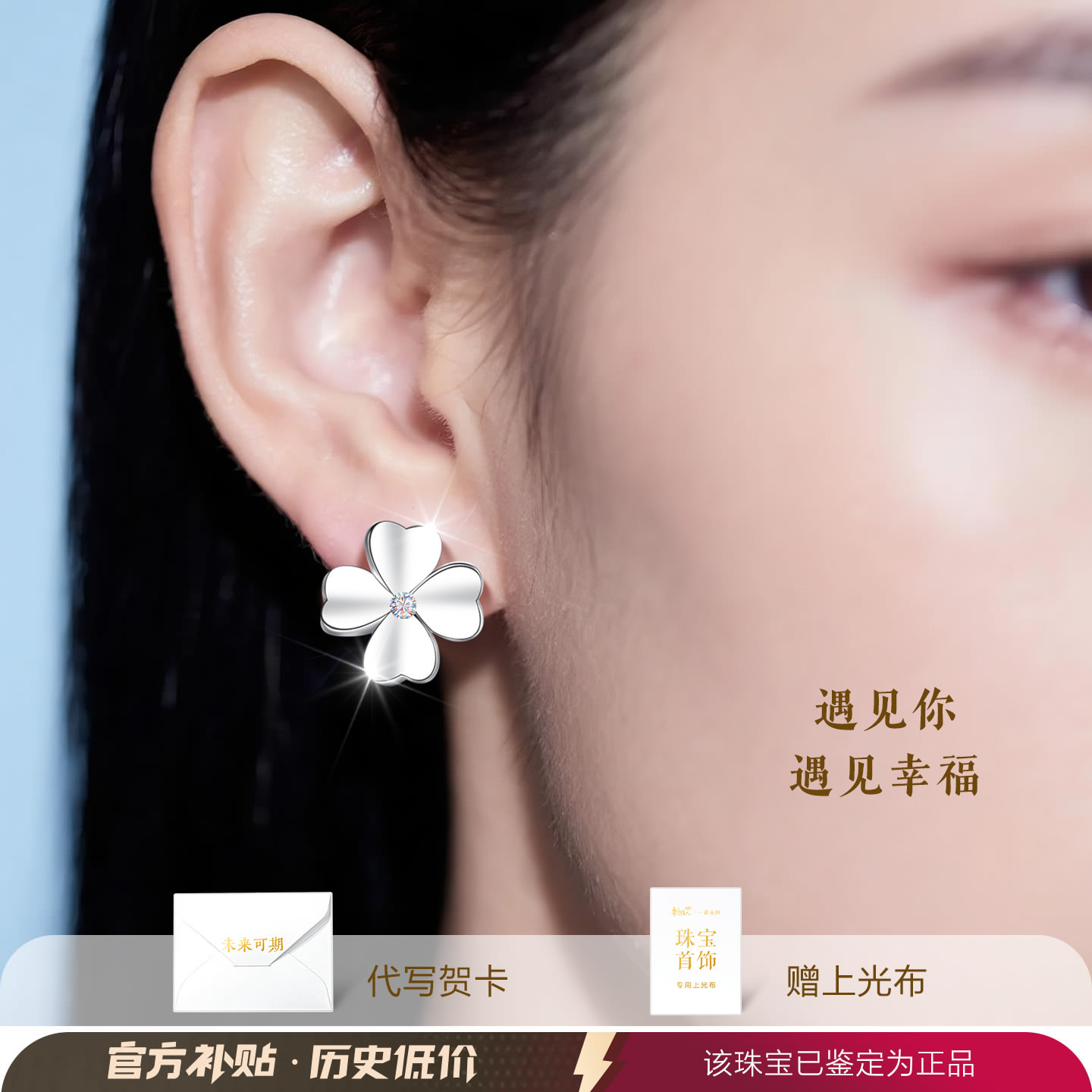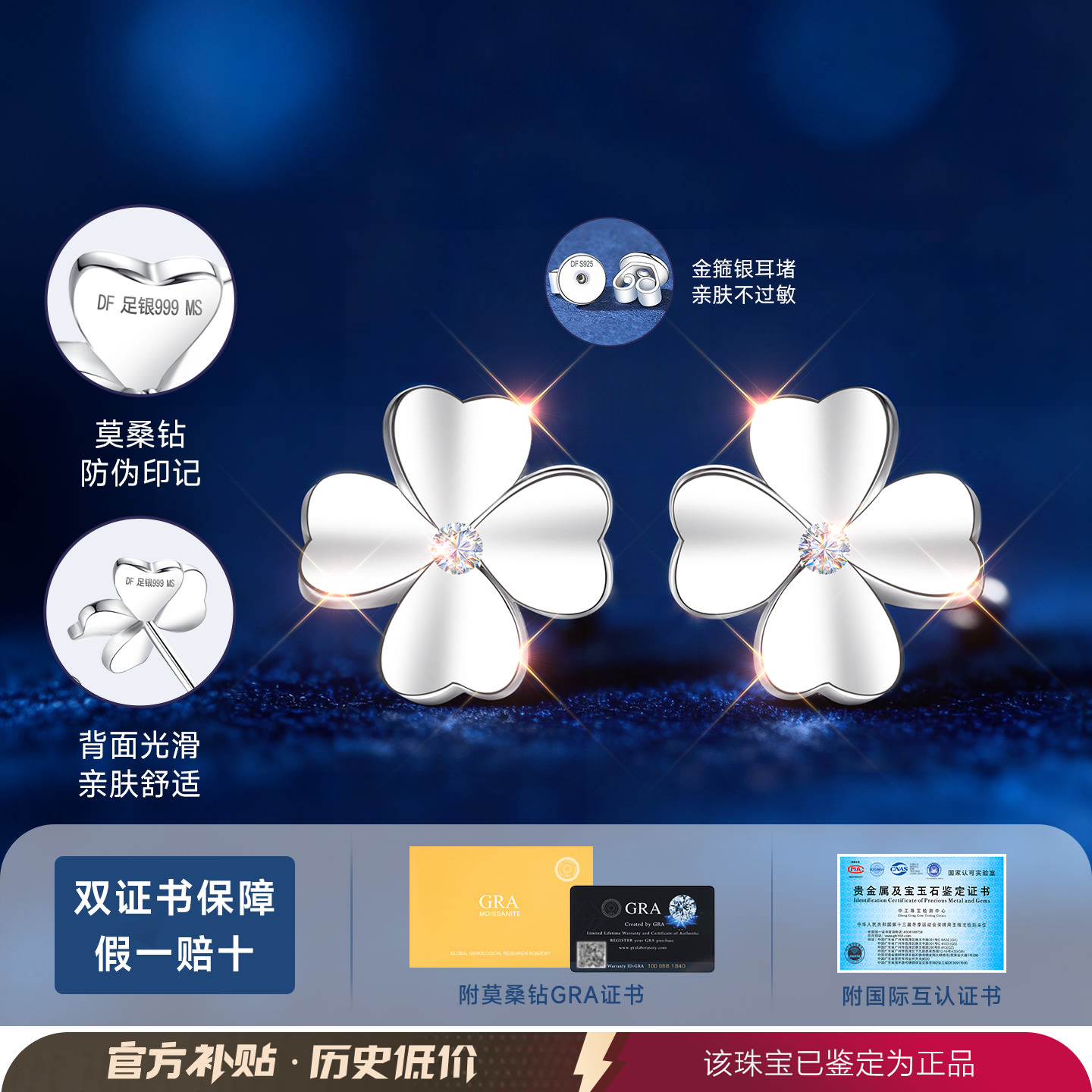 四叶草银耳钉999纯银足银莫桑石钻石莫桑钻耳饰耳环女士女养耳洞