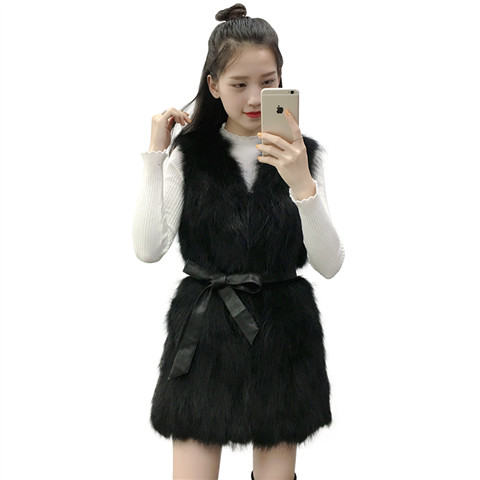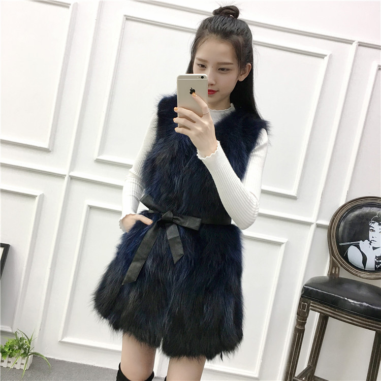 狐狸 貉子毛中长款女装皮草马甲上衣显瘦真皮毛一体坎肩加厚外套
