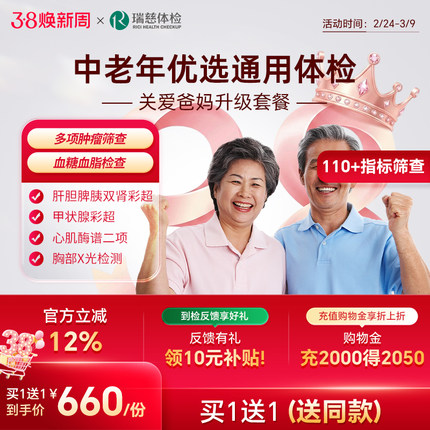 【买1送1】关爱爸妈升级男女中老年父母深度体检瑞慈全国门店通用
