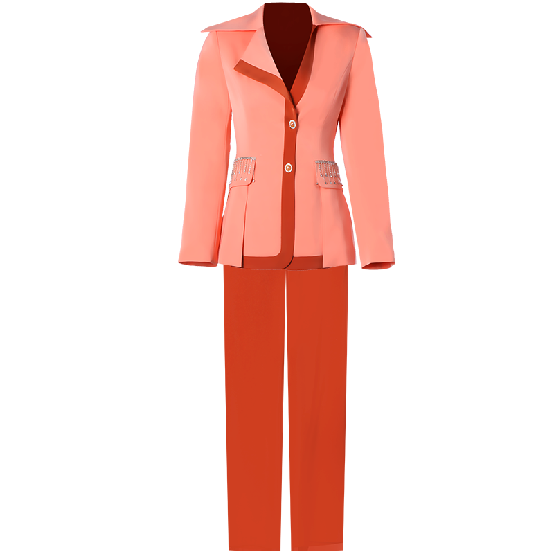 创意狐礼服职业套装主持人职场西装喇叭裤两件套休闲通勤长袖正装