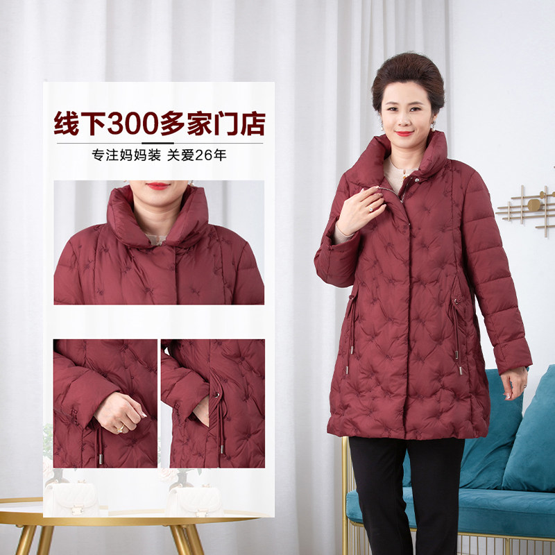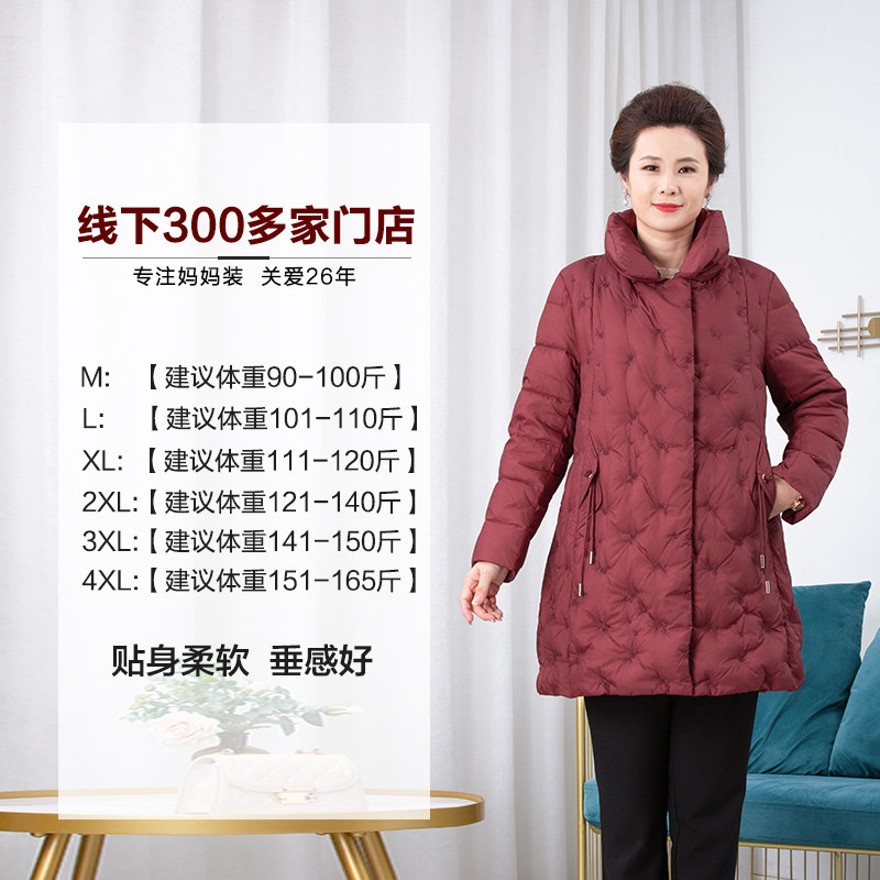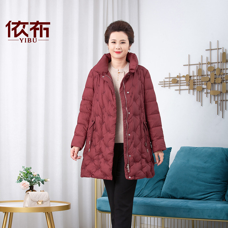 依佈中老年女装刺绣羽绒服2025冬装新款中长款外套妈妈装保暖上衣