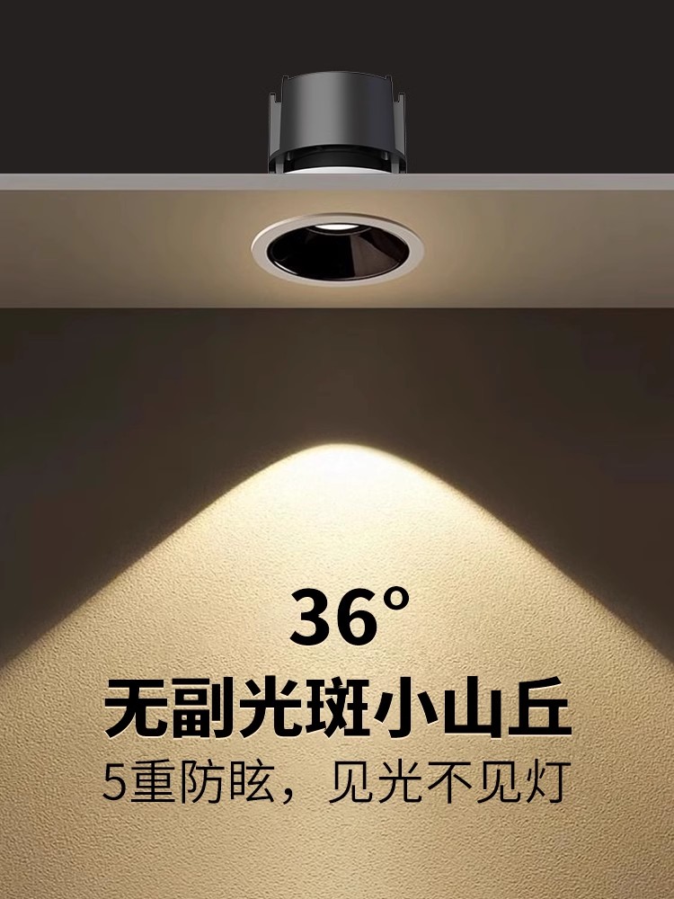 全光谱嵌入式cob防眩射灯高显指小山丘无副光斑客厅天花洗墙射灯