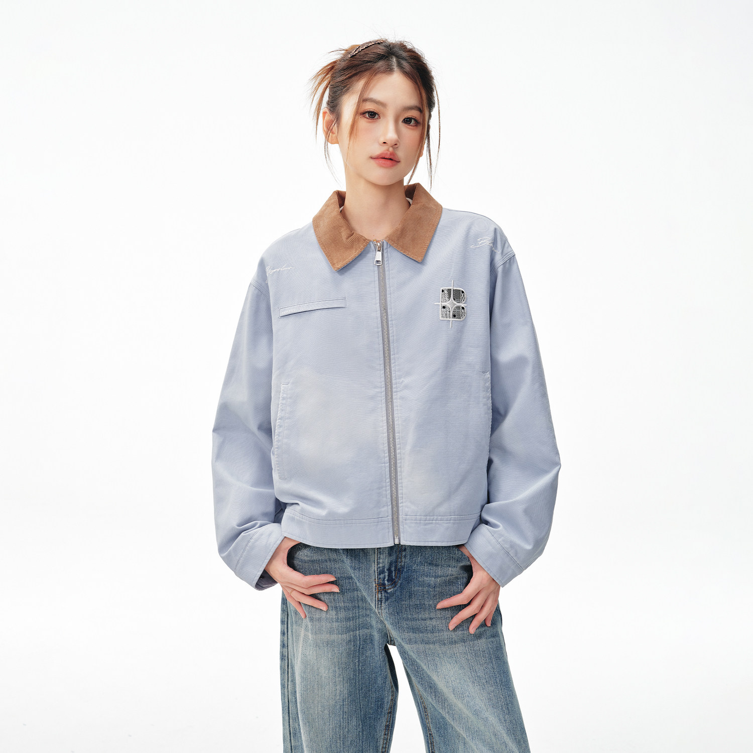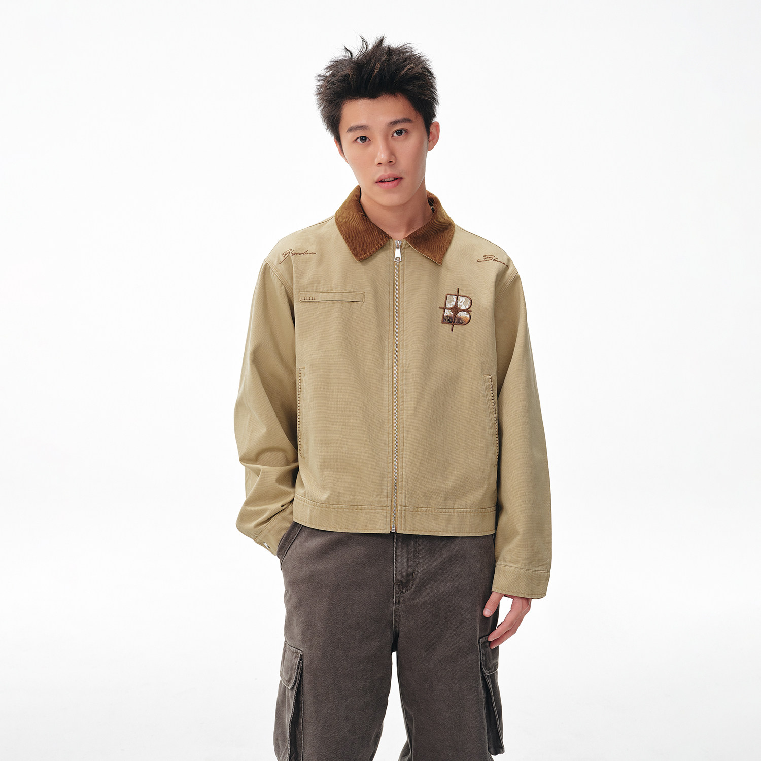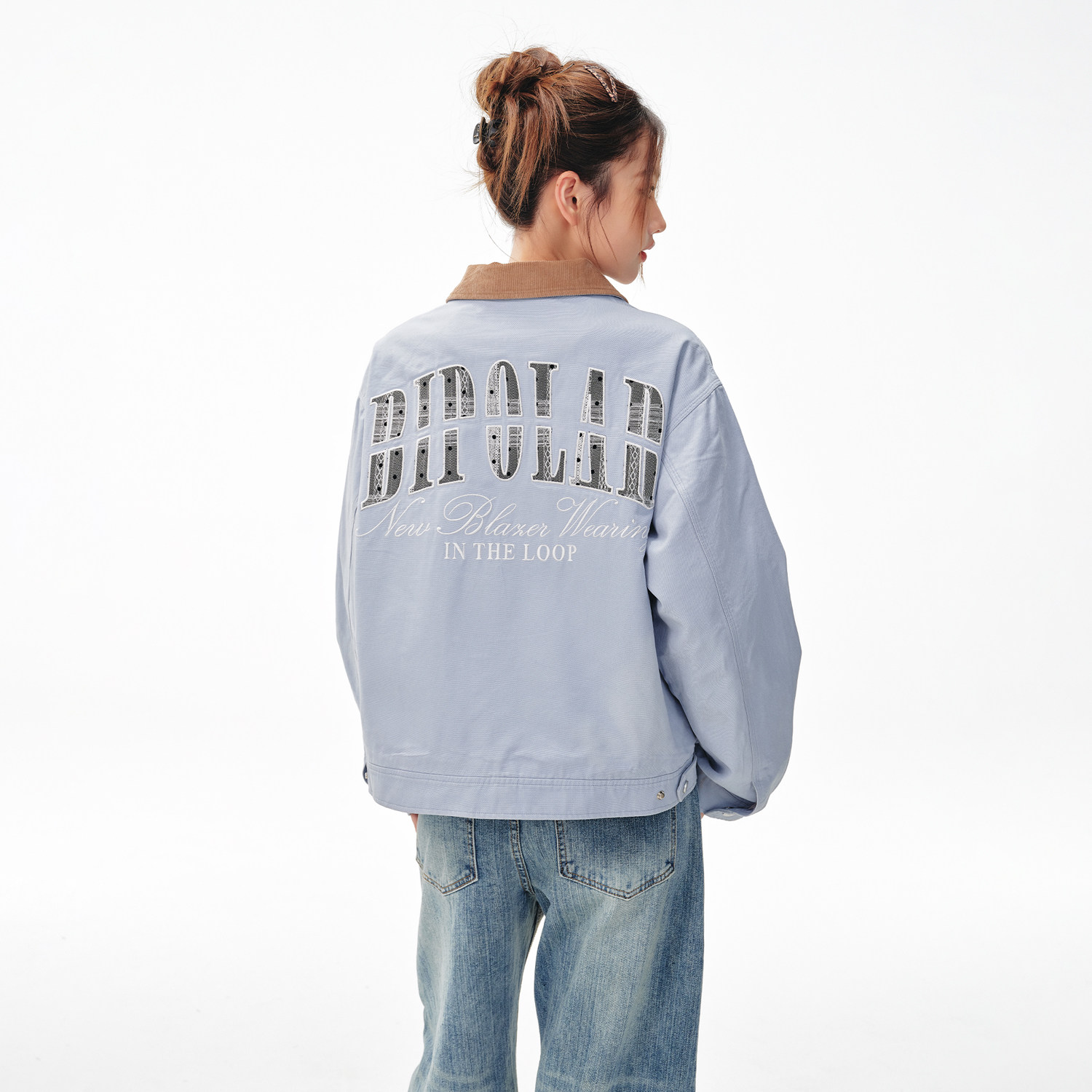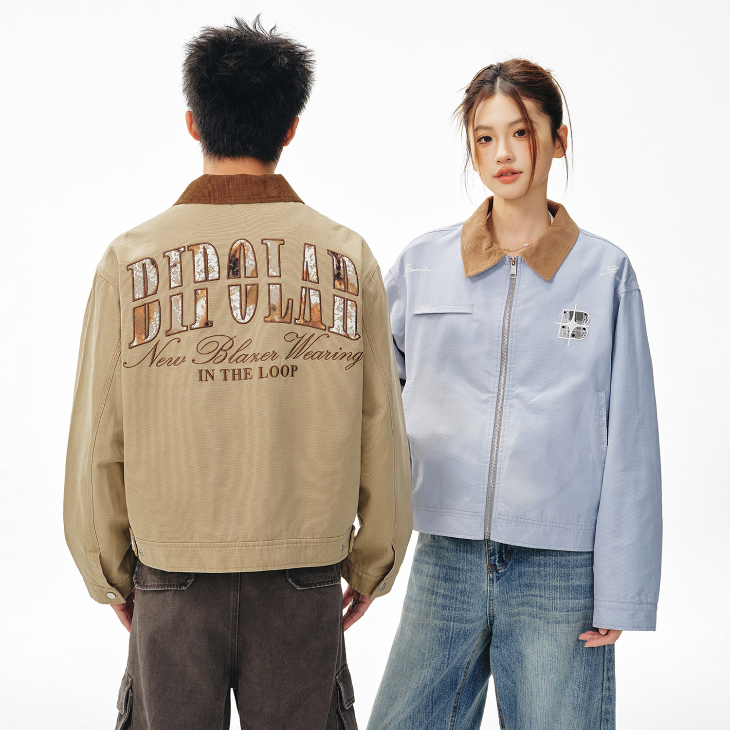 BIPOLAR蕾丝贴布绣底特律夹克美式休闲短款翻领上衣外套男秋冬款
