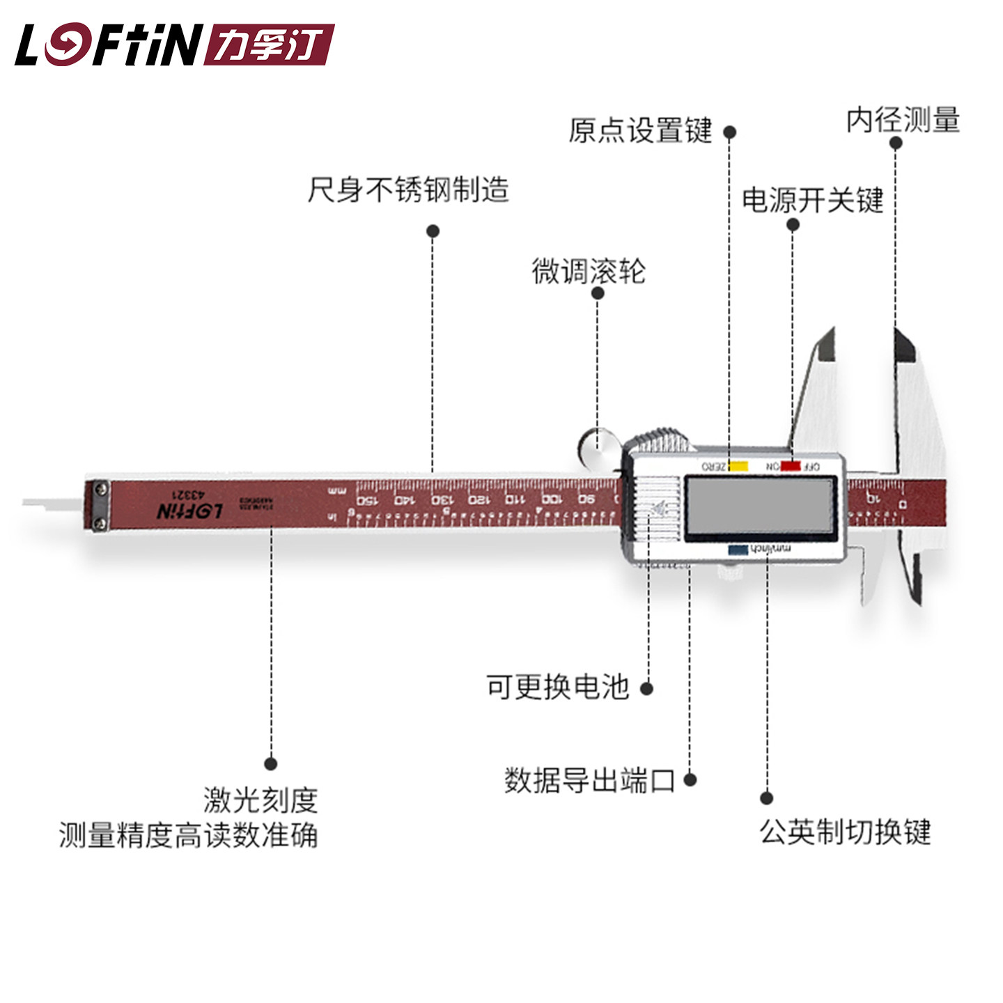 力孚汀游标卡尺不锈钢数显游标卡尺高精度家用小型带表深度尺高度