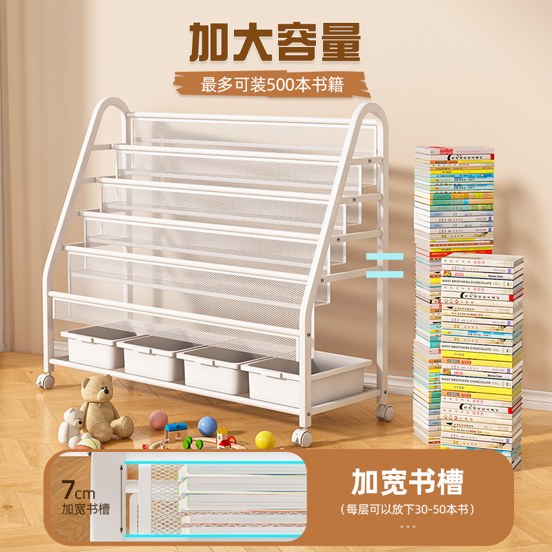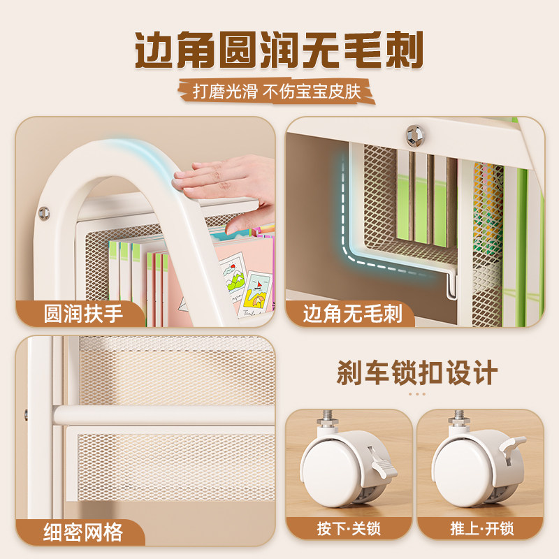 儿童书架绘本架可移动玩具收纳架宝宝书柜置物架子落地多层阅读架