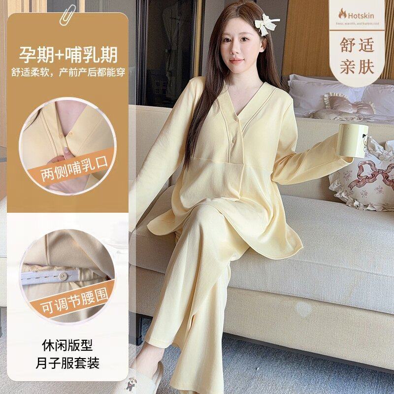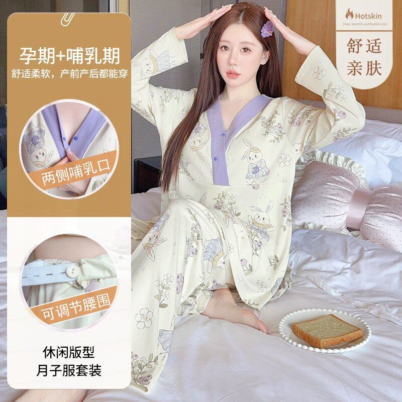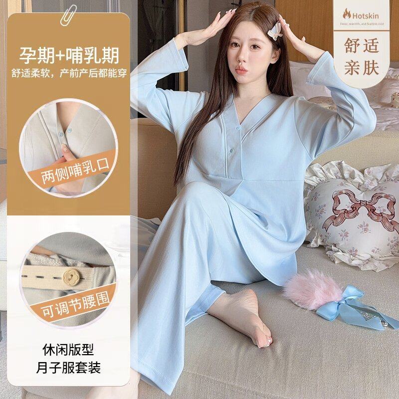 带胸垫月子服春秋季产后纯棉孕妇睡衣产妇喂奶哺乳衣孕期家居服