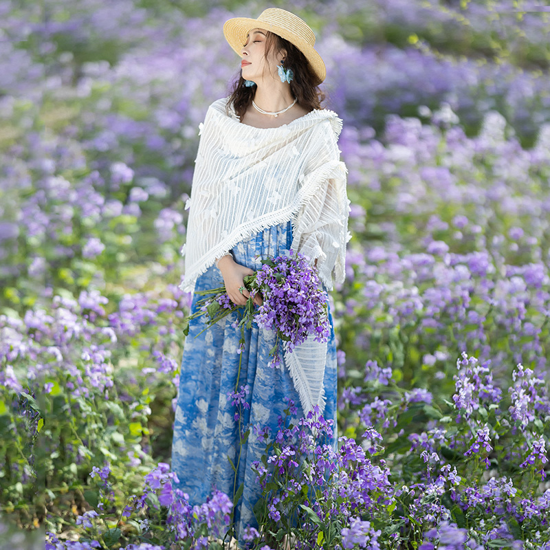 【四月人间】文艺流苏花边针织开衫女2025夏季百搭竖条纹防晒披肩