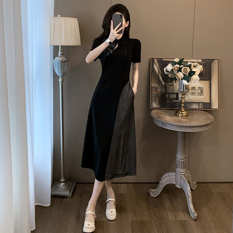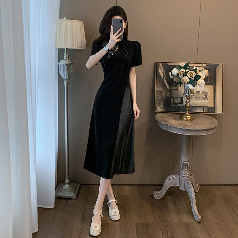 新中式国风改良旗袍连衣裙女夏季新款高级感修身显瘦赫本风小黑裙