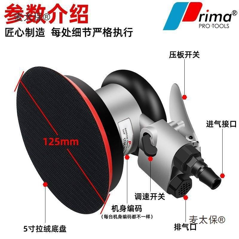 普力马五寸气动打磨机抛光机磨光机汽车打蜡抛光砂纸干磨机麦太保