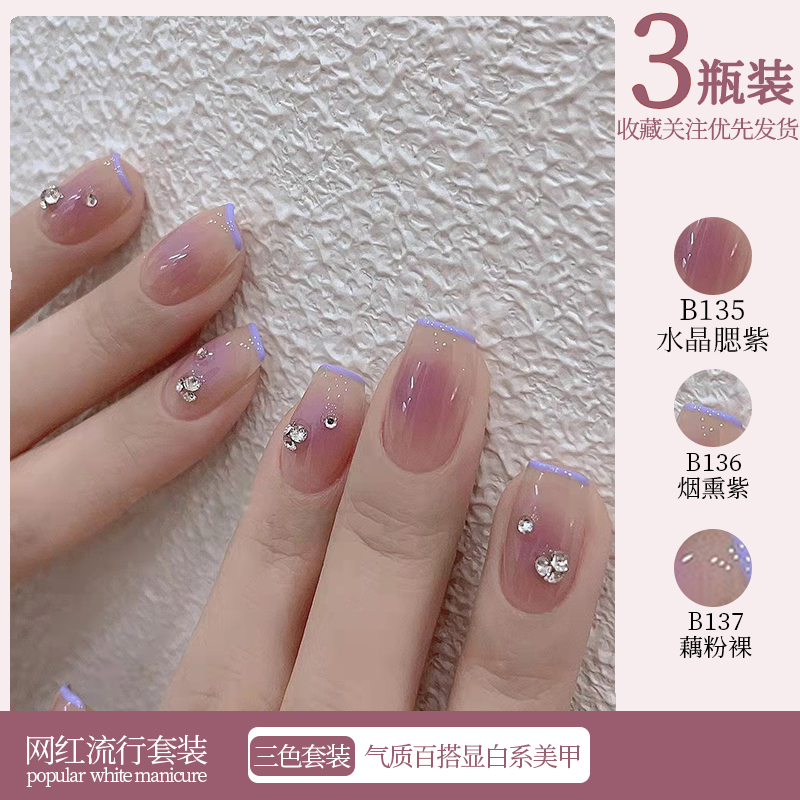 网红冰透指甲油胶2025年新款流行腮紫腮红裸色套装全套美甲店专用