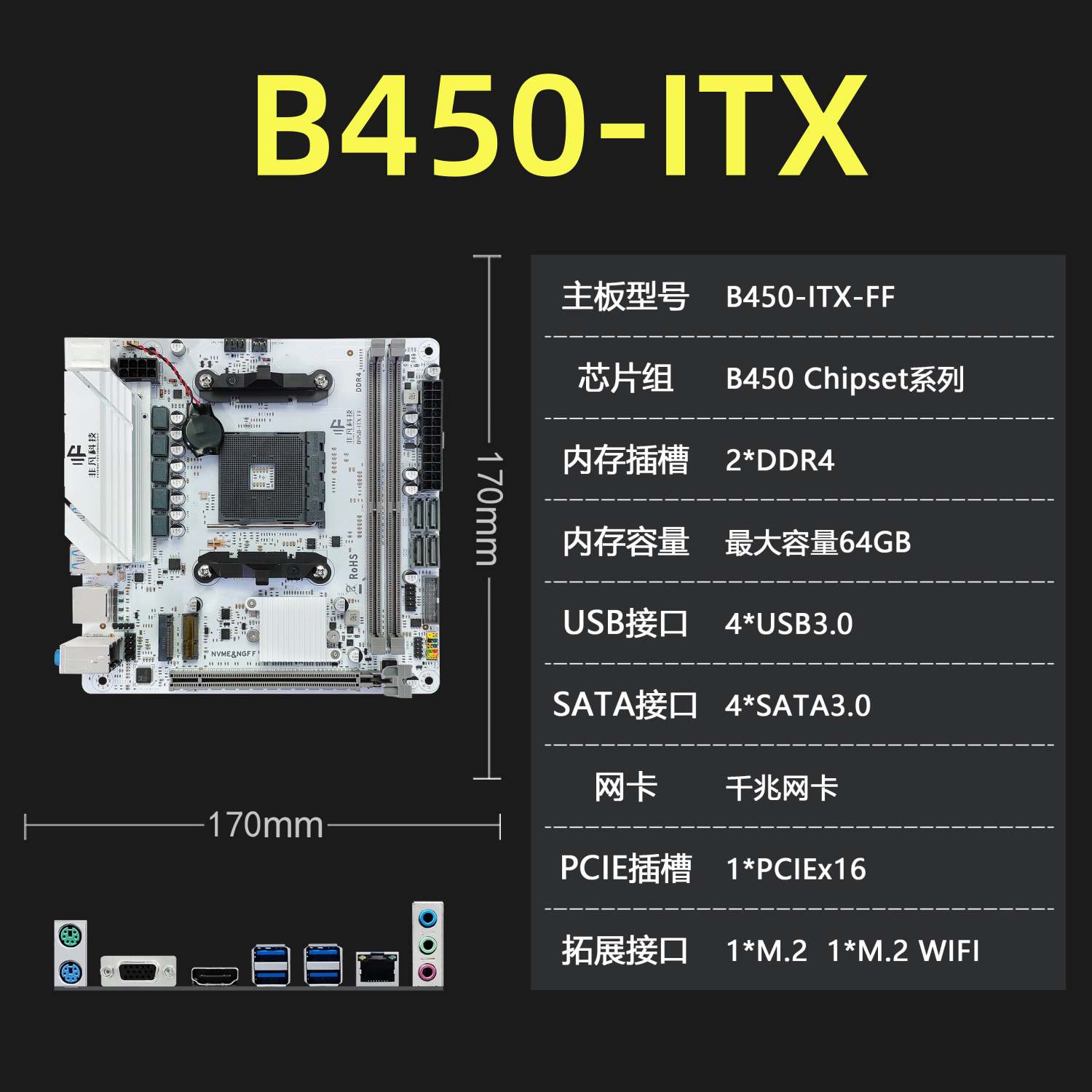 全新B450-ITX主板AM4支持锐龙12345代迷你台式机电脑超频17*17