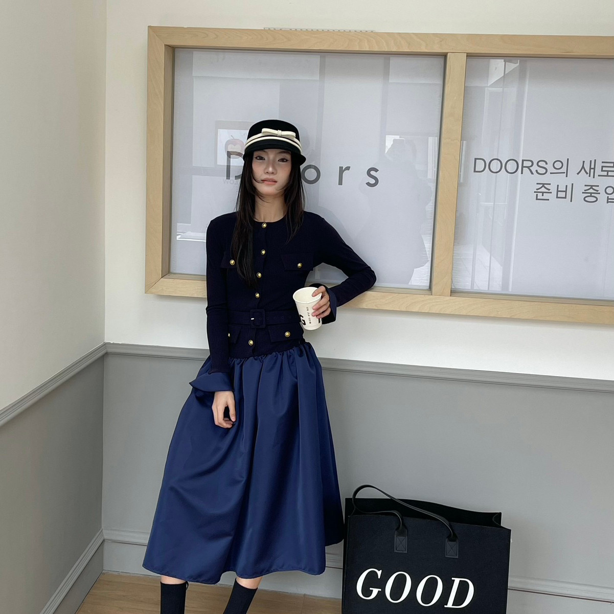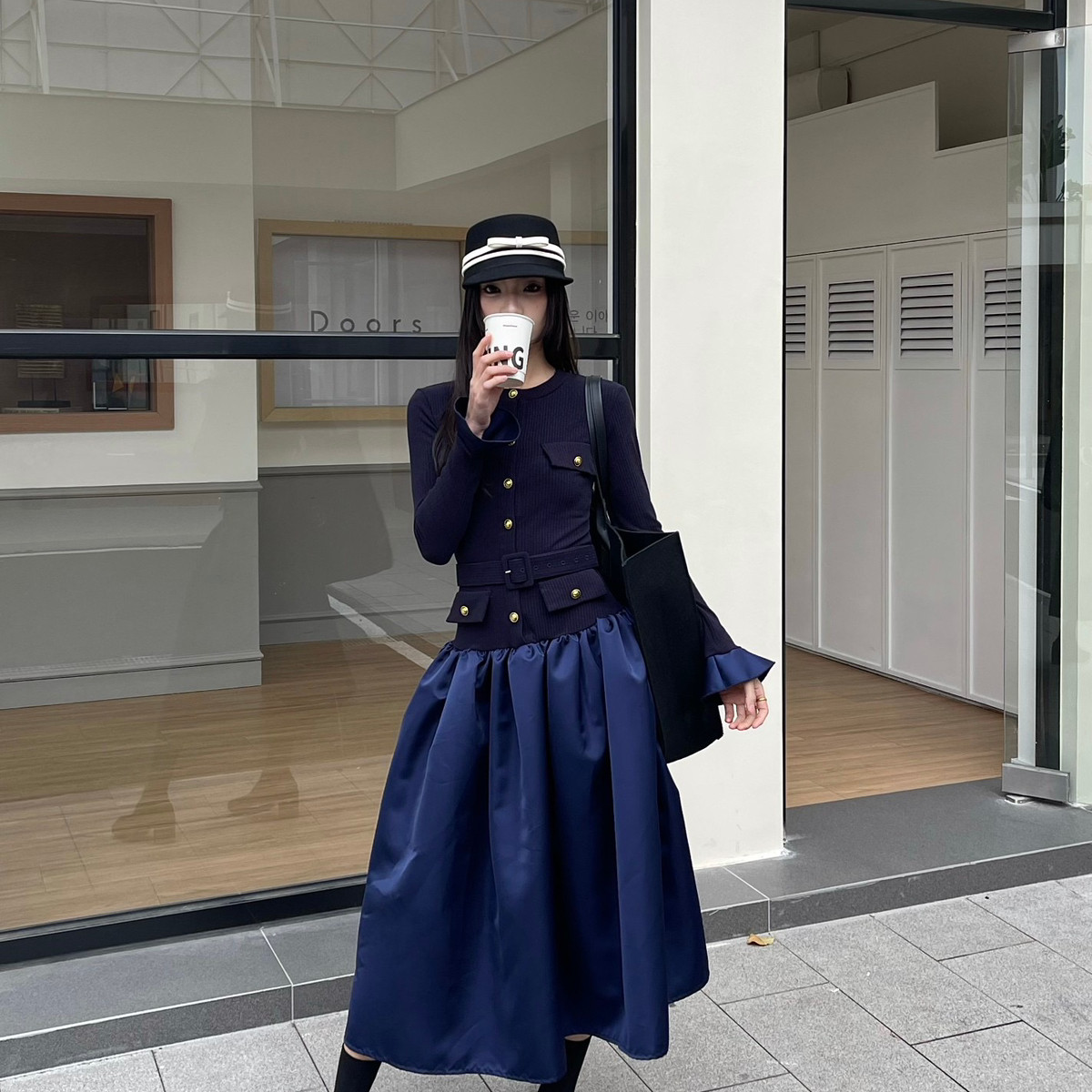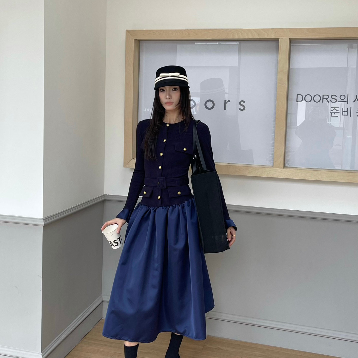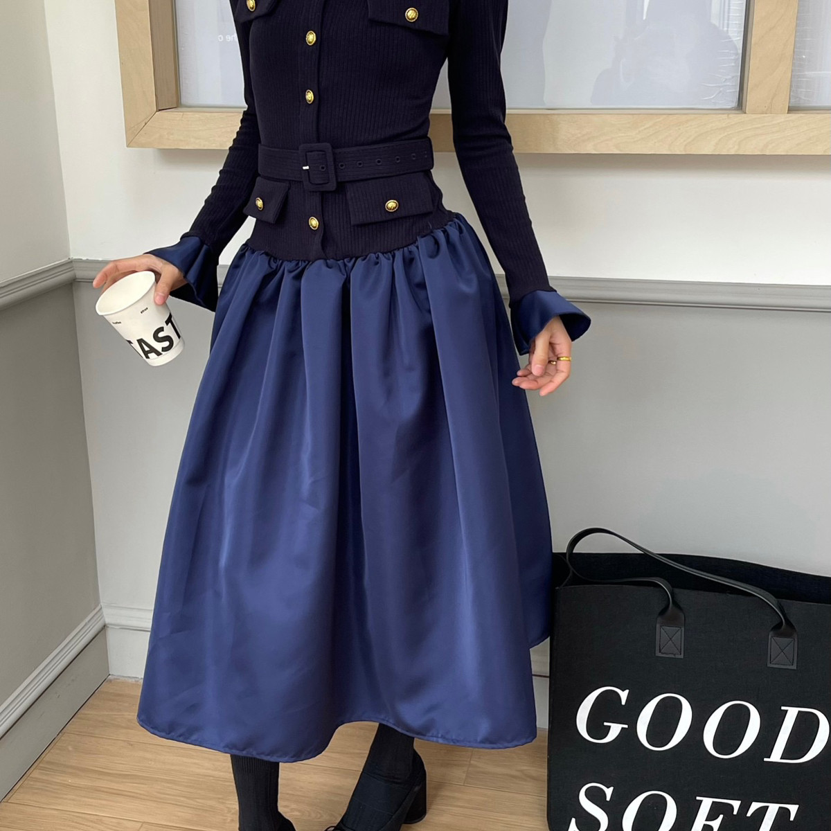 MSKIN-26年早春新款小众设计潮牌气质拼接连衣裙(配腰带)Z7716